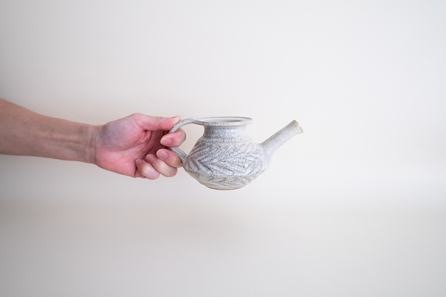 ポットのようなカタチがモダンな注器です。注ぎ口も水切れが良い仕上がりになっています。ゴブレットショットと組み合わせて燗酒や冷酒をお楽しみください。