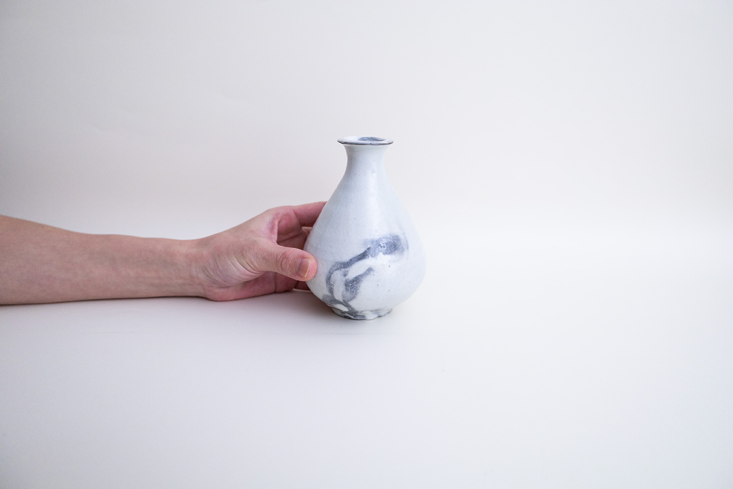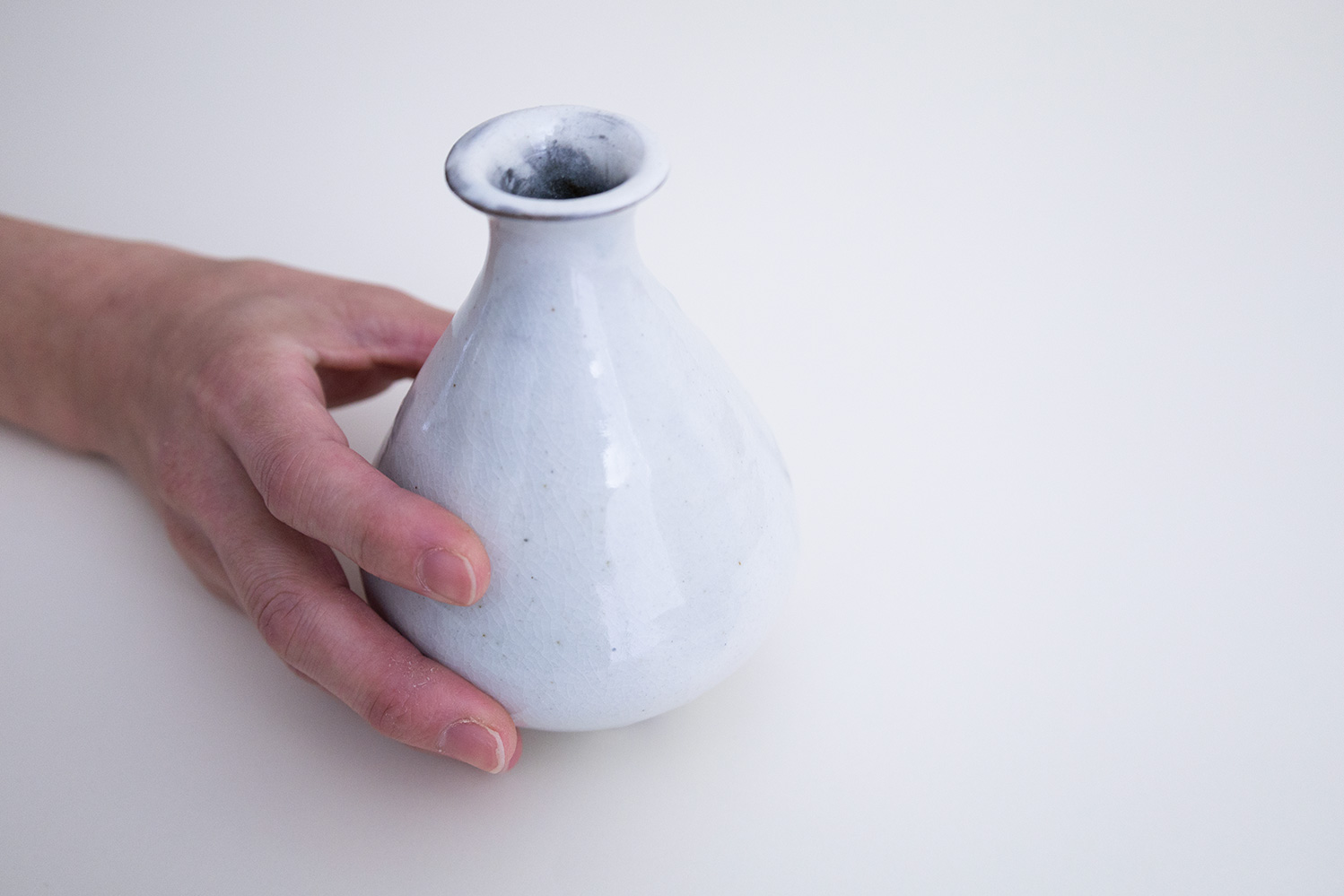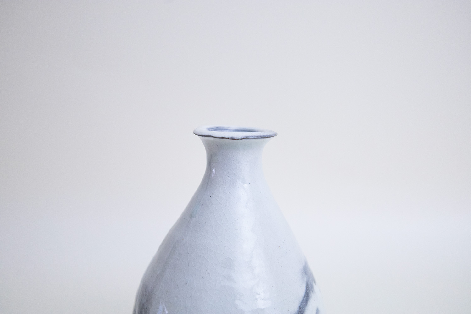 スラリとしたフォルムにうっすらと淡い青味のある粉引が美しい徳利です。