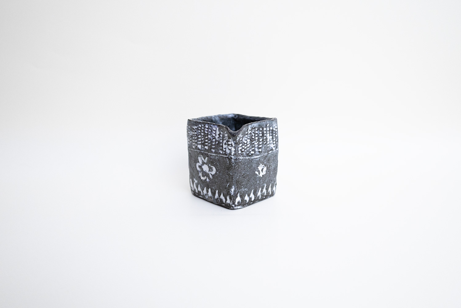 三島の注器です。印花に使われてる印はご自身が製作されており、松本さんらしさが全面に現れている唯一無二の三島となっています。さらに、しっかりと焼き締めることで香りが移りにくくなっています。