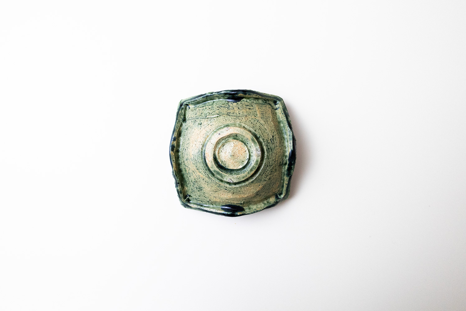 松本さん独自の制作方法で生み出された、見る者の目を奪う迫力ある作品です。一見なさそうな高台がある事に驚きを隠せません。盛り付ける料理をこの上ない一品に変えてくれる一枚です。