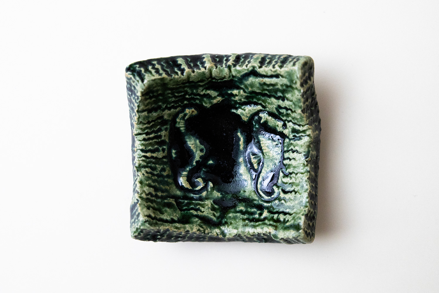 松本さん独自の制作方法で生み出された、見る者の目を奪う迫力ある作品です。一見なさそうな高台がある事に驚きを隠せません。盛り付ける料理をこの上ない一品に変えてくれる一枚です。