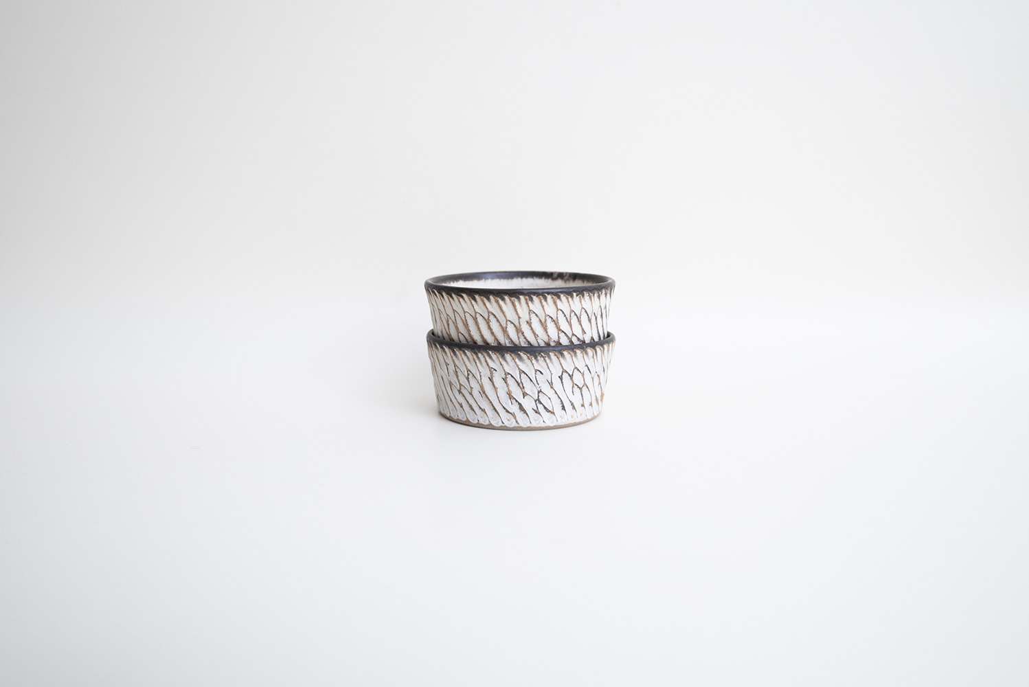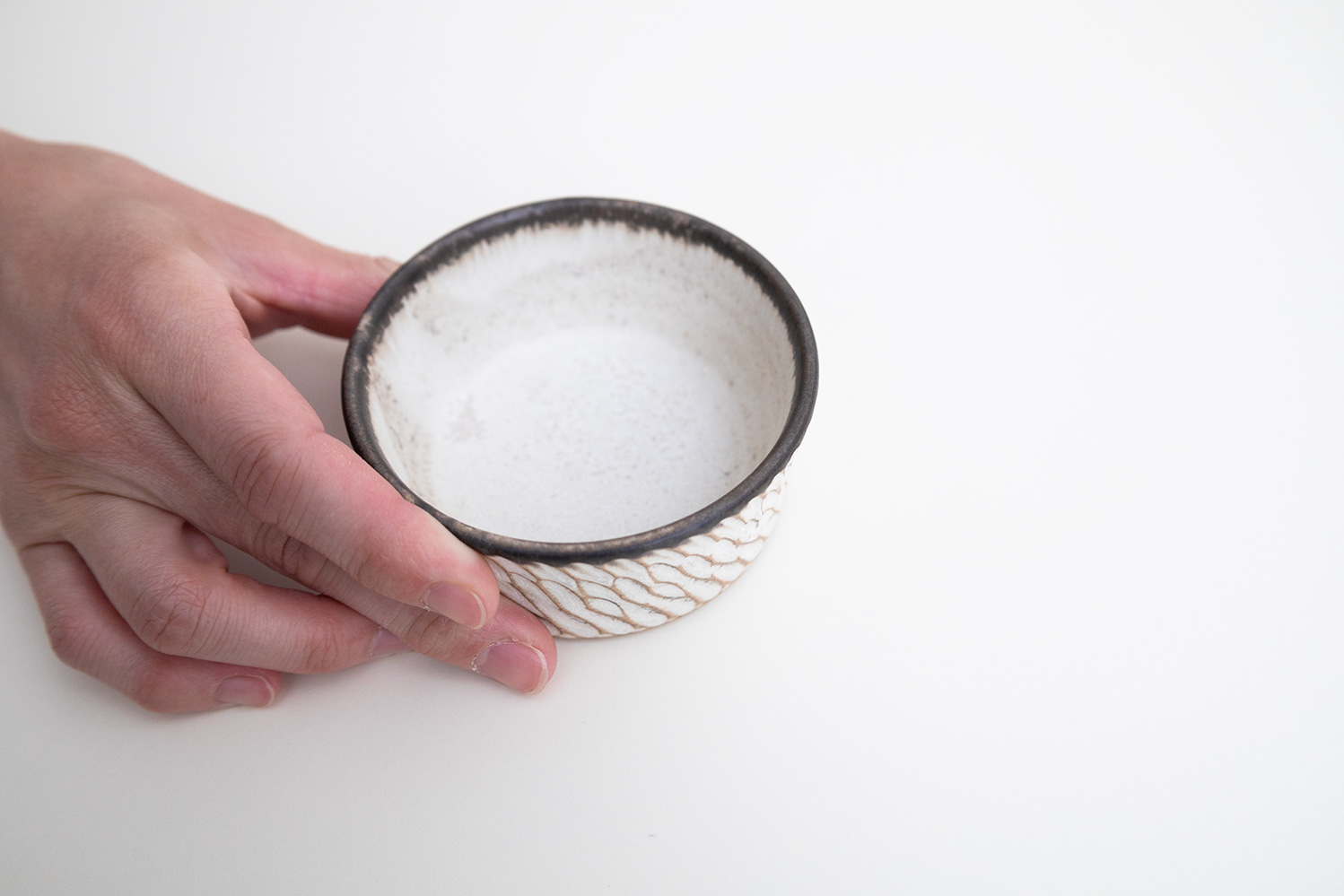 ストンとした浅めの小鉢です。シンプルな形に施された鎬が良く引き立ちます。シーンを選ばず活躍してくれそうです。