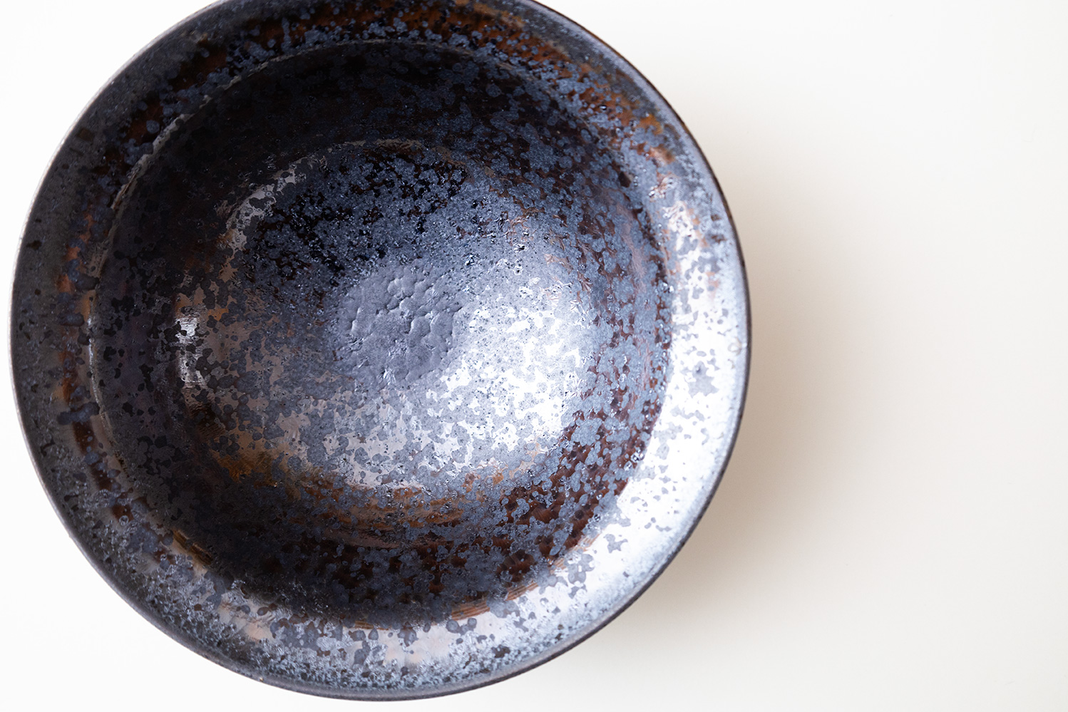 結晶のような模様と独特の光沢が印象深い器です。日々使ううつわとして活躍してくれそうなスタンダードな形の深鉢です。
