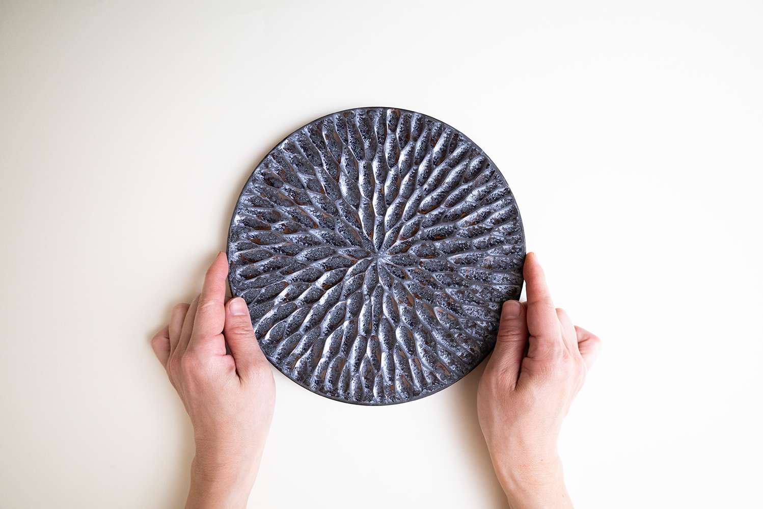 LEAF VEINとは葉脈を意味する言葉です。ビカクシダのリドレイの葉をイメージした鎬を入れているそうです。鎬の部分に現れた独特の釉薬の変化が一層目を惹きます。