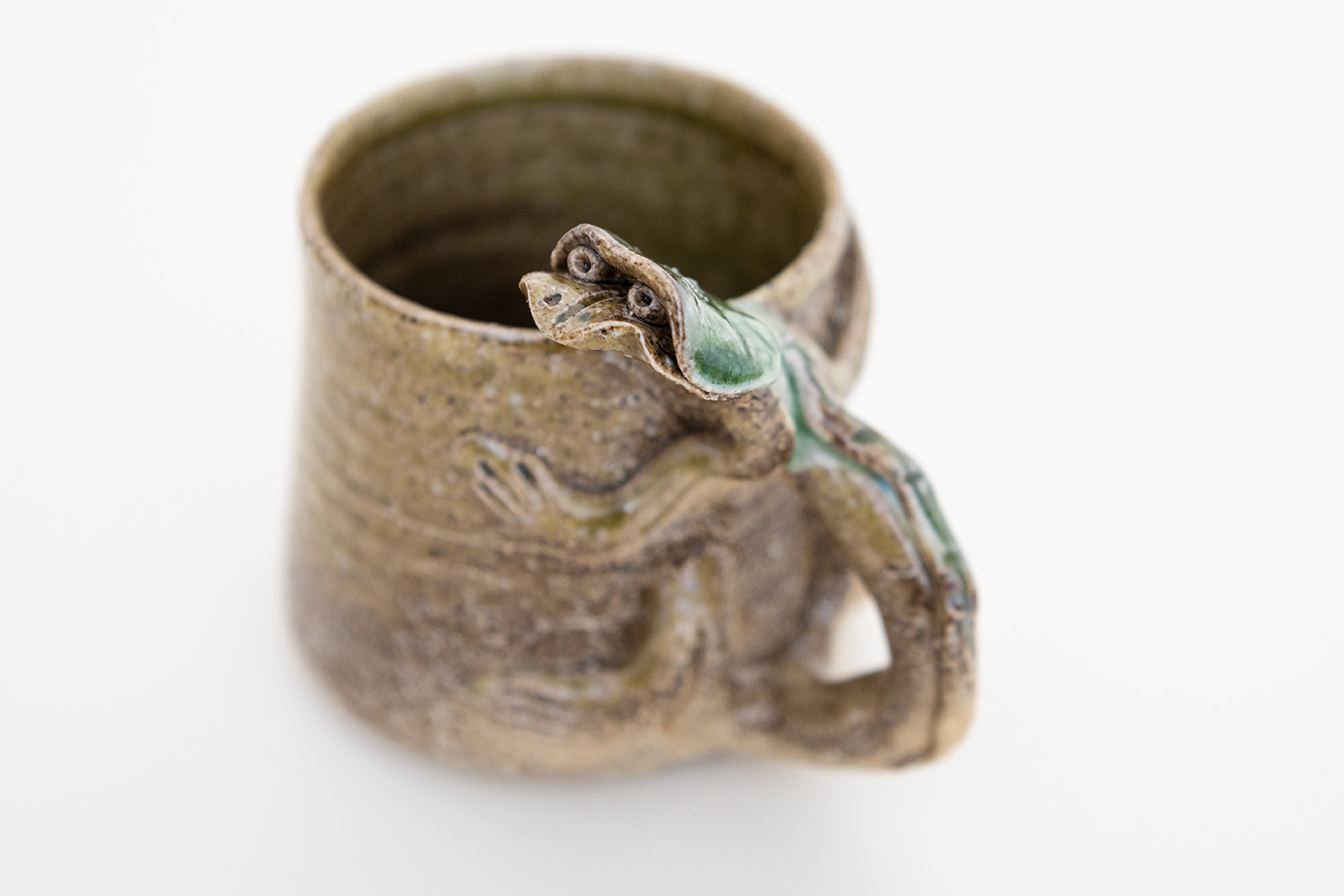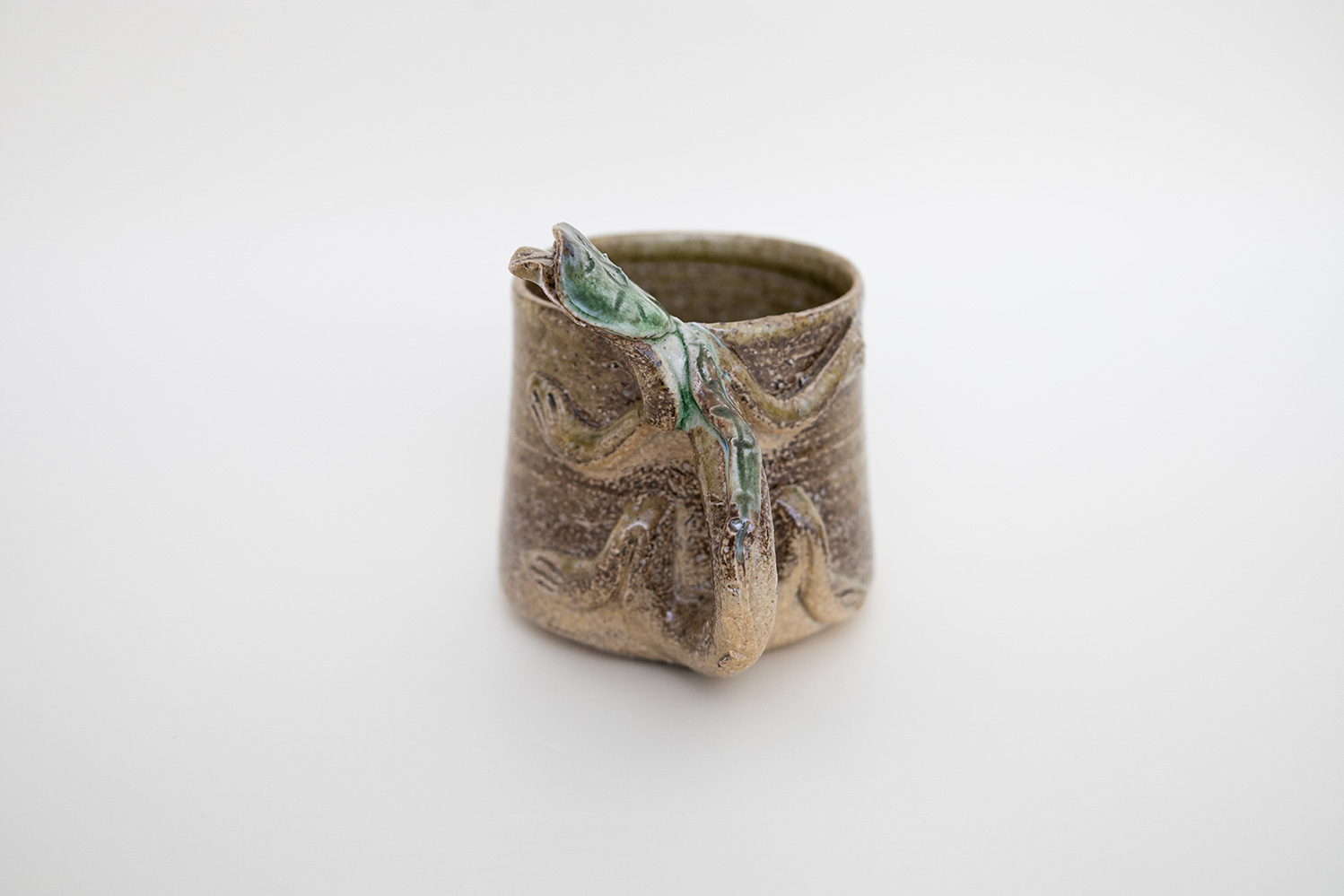 当店の10周年を記念して制作していただいた、藤原夫婦のコラボマグカップです。奥様の志鈴香さんのマグカップをベースに、様々な「けもの」をモチーフとした取手をご主人の純さんが施してくださいました。「けもの」という名をつけておきながら、爬虫類や妖怪も混ざっているのはご愛嬌。カッパは古仙堂の看板キャラ、蛇は志鈴香さんが蛇好きということで「けもの」シリーズに参加しております。全身茶色はタヌキ、耳が丸いのはクマ、白黒はネコ…らしいですが、どう捉えるかはあなた次第!