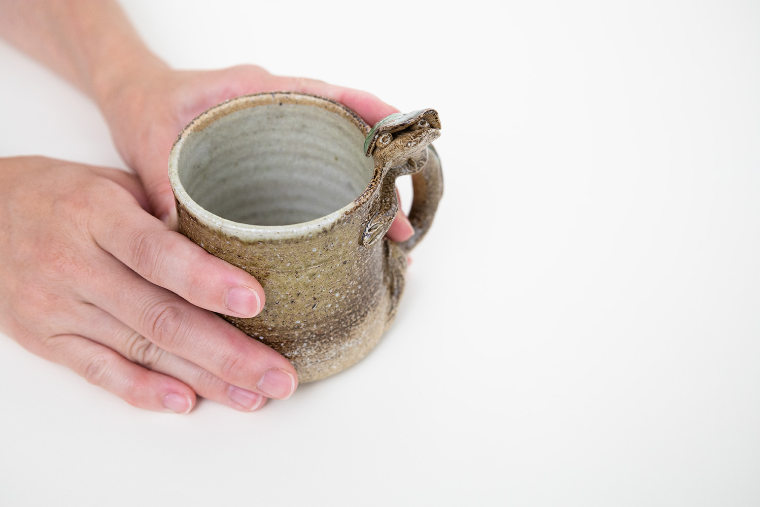 当店の10周年を記念して制作していただいた、藤原夫婦のコラボマグカップです。奥様の志鈴香さんのマグカップをベースに、様々な「けもの」をモチーフとした取手をご主人の純さんが施してくださいました。「けもの」という名をつけておきながら、爬虫類や妖怪も混ざっているのはご愛嬌。カッパは古仙堂の看板キャラ、蛇は志鈴香さんが蛇好きということで「けもの」シリーズに参加しております。全身茶色はタヌキ、耳が丸いのはクマ、白黒はネコ…らしいですが、どう捉えるかはあなた次第!