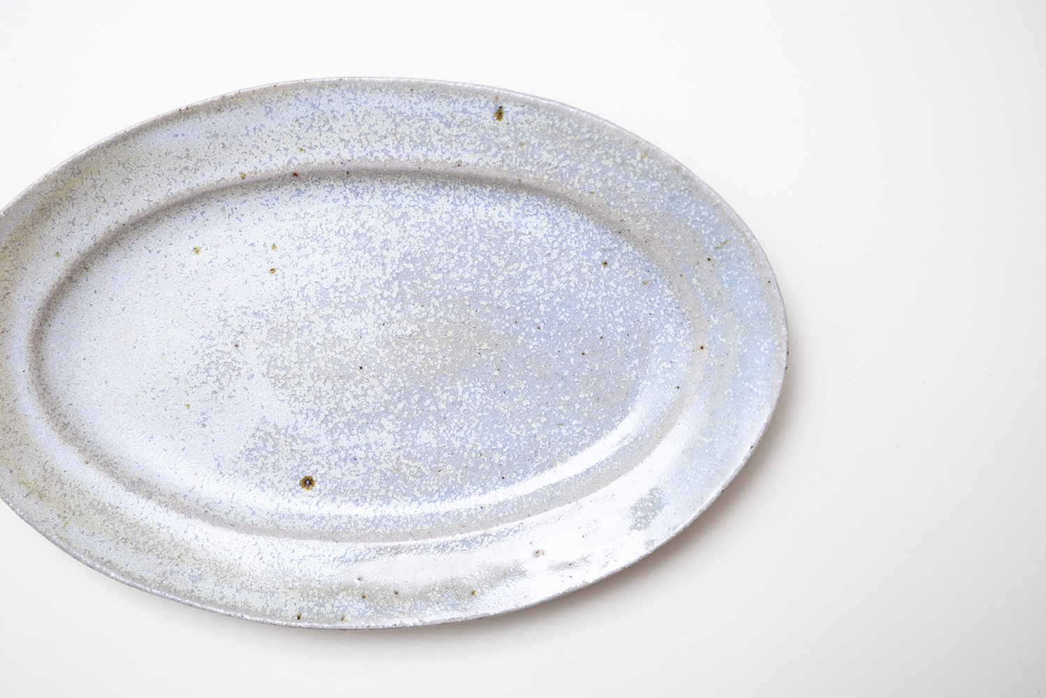 程よい手仕事の雰囲気と土物らしさのある釉薬が、シンプルなオーバルに深みを与えています。丈夫で軽くて重なりも良いので、日々の料理をストレスなく楽しんでお使いいただけると思います。