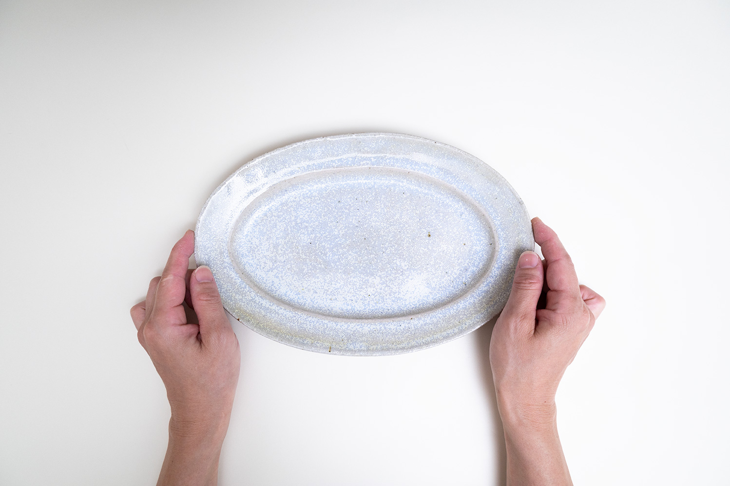 程よい手仕事の雰囲気と土物らしさのある釉薬が、シンプルなオーバルに深みを与えています。丈夫で軽くて重なりも良いので、日々の料理をストレスなく楽しんでお使いいただけると思います。