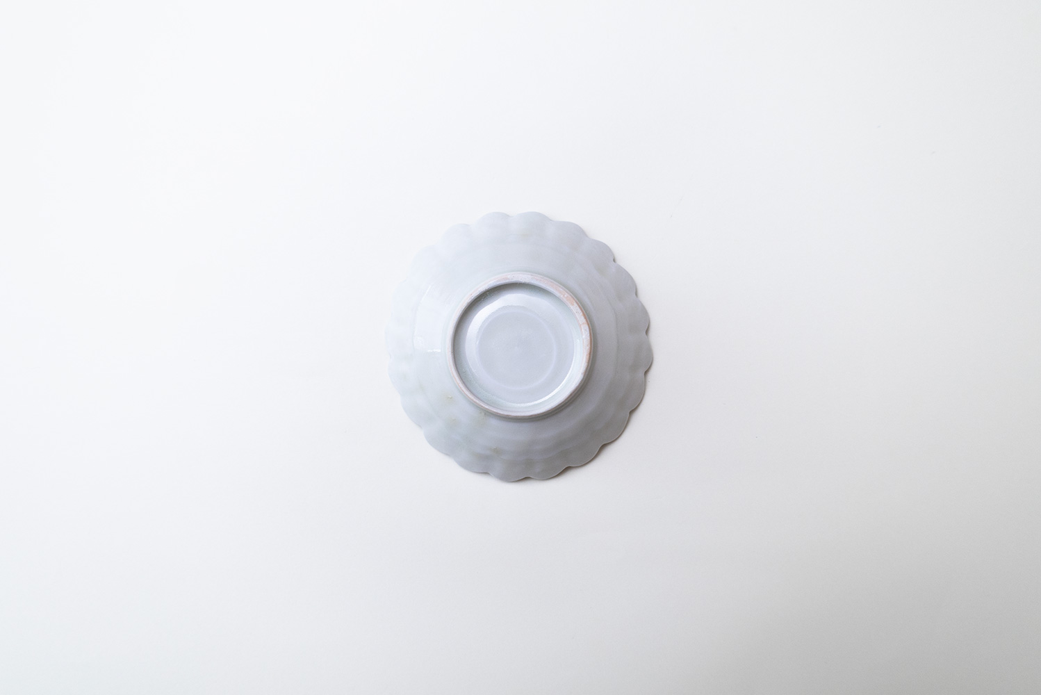 淡く透明感のある青緑色の灰青釉(はいせいゆう)に菊の花を模した小鉢です。