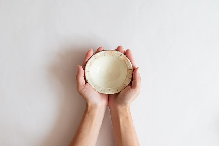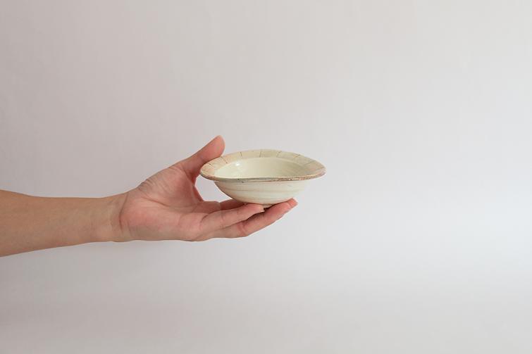 柔らかな印象を与える粉引の刷毛目、縁に描かれた鉄釉の線。どちらも温かみをしっかりと伝えてくれる手仕事の証です。
