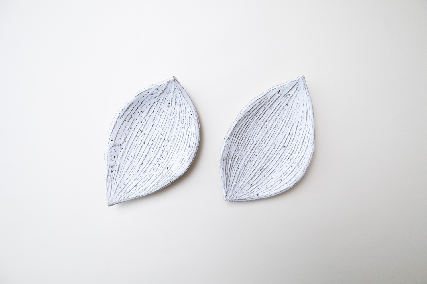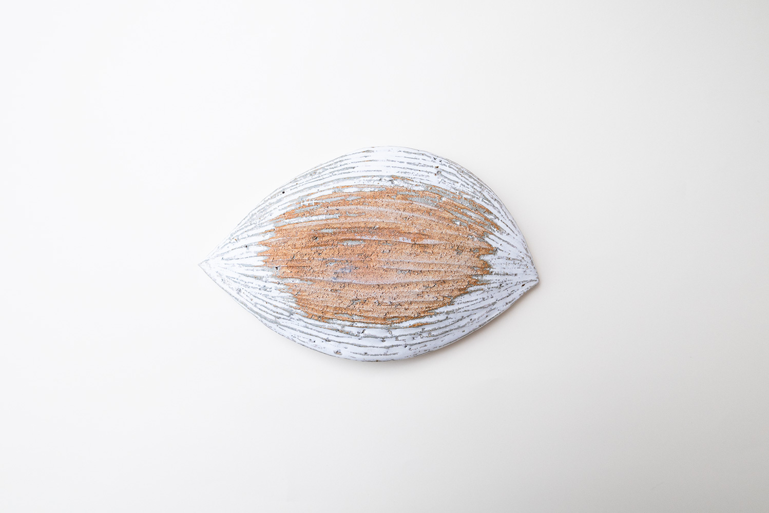 一枚の葉のような形が印象的で可愛くも力強くもあるお皿です。インパクトのある造形はシンプルなお料理も華やかに見せてくれます。