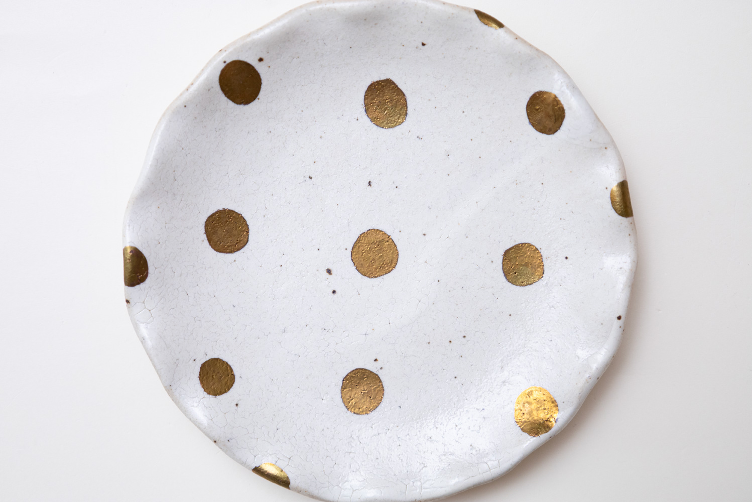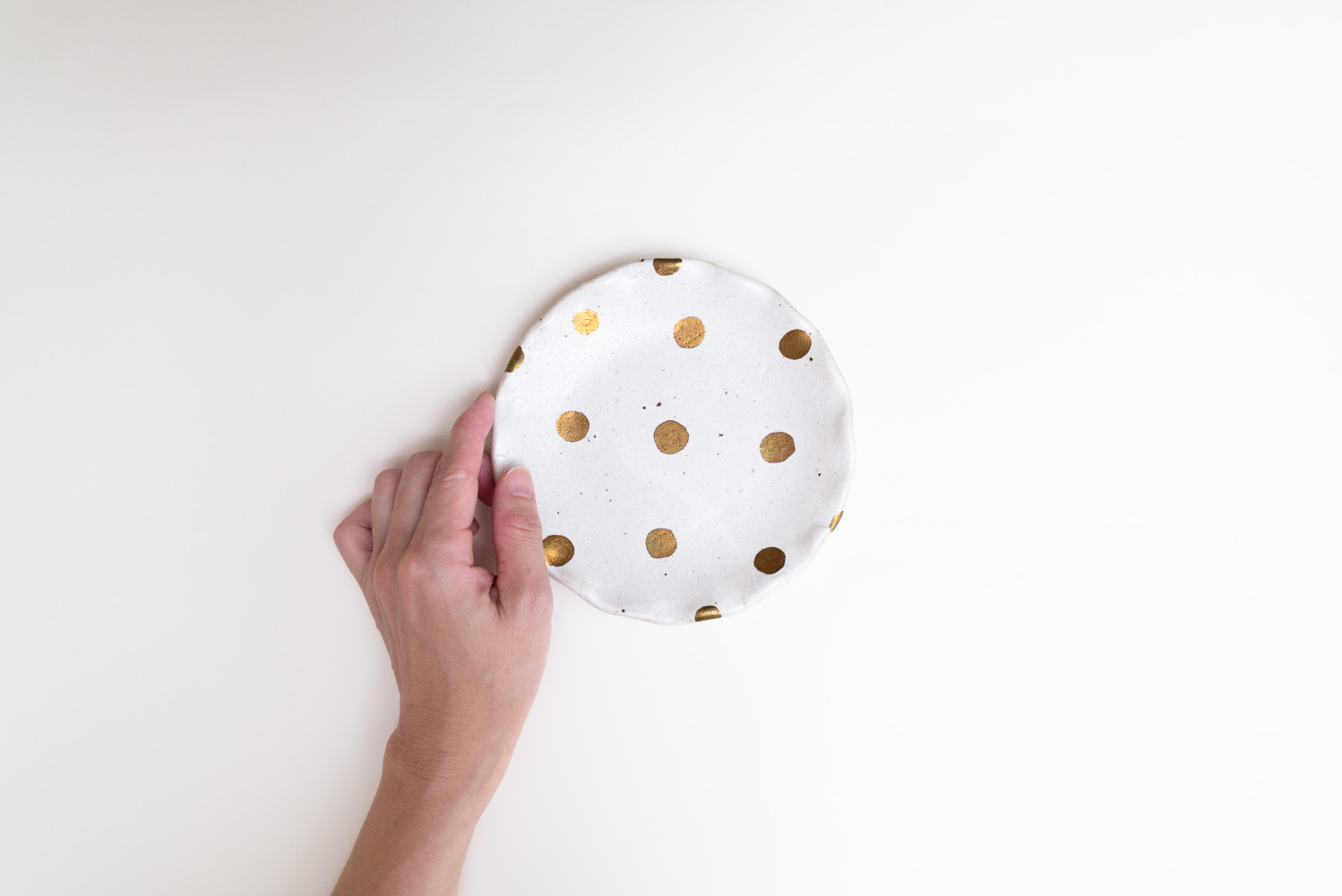 マットな質感の粉引に金彩の落ち着いた金色がよく似合います。金彩粉引マグカップのソーサーにしても素敵です♪