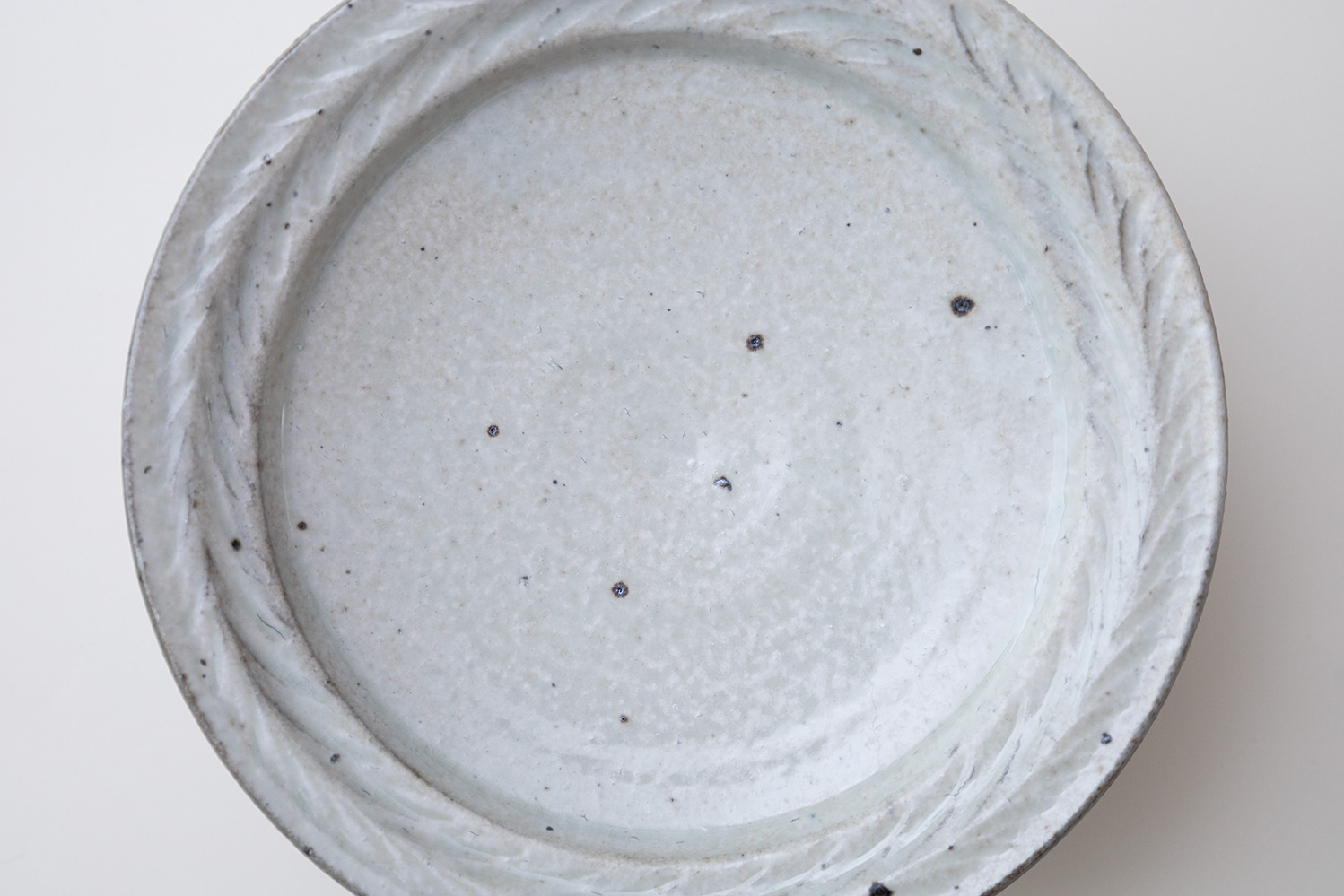 小さな焼き菓子やフルーツをのせるとかわいいですね。土らしさが残る触感や景色と、ほんのりと淡い青が絶妙に合わさった青灰(せいはい)。焼成の方法が違うだけで、釉薬などはキナリの器と全て同じなのだそう。キナリ同様、甘すぎない雰囲気に纏めてくれるので、和食などの素朴なお料理にも良く似合います。