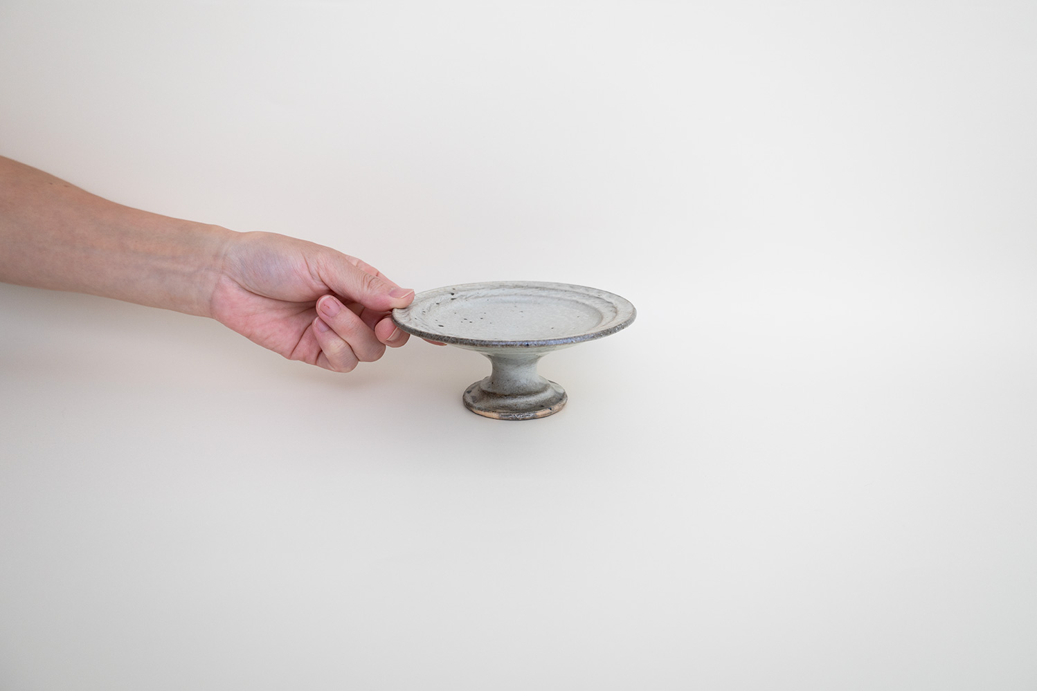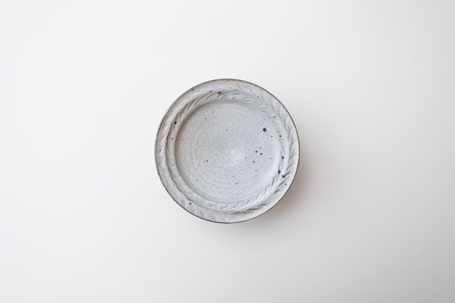 小さな焼き菓子やプリンなどをのせるとかわいいですね。土らしさが残る触感や景色と、ほんのりと淡い青が絶妙に合わさった青灰(せいはい)。焼成の方法が違うだけで、釉薬などはキナリの器と全て同じなのだそう。キナリ同様、甘すぎない雰囲気に纏めてくれるので、和食などの素朴なお料理にも良く似合います。
