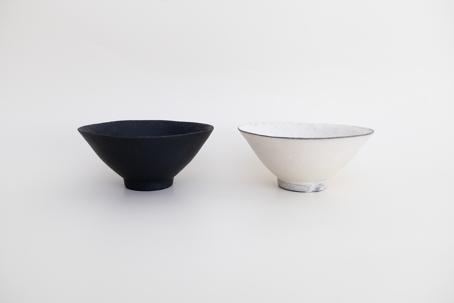 土物の風合いはそのままに、まるで半磁のような繊細な薄造りのうつわです。長年培った技術の成せる技と言えるでしょう。土物の素朴さと儚げな上品さが大変美しい作品です。薄造りですが強度は通常の粉引、黒マットと変わりません。
