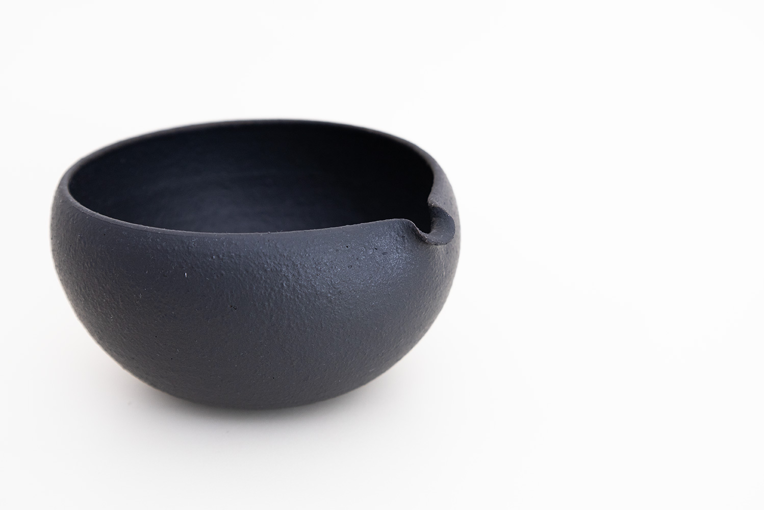 加藤さんならではのやさしく柔らかいマットな黒色のうつわ。プロの料理から家庭料理まで、盛り付けるお料理を上品に引き立ててくれます。土のつぶつぶ感をほんのり残しつつ、滑らかな手触りをしています。シンプルな形に小さめの口が可愛らしい片口です。