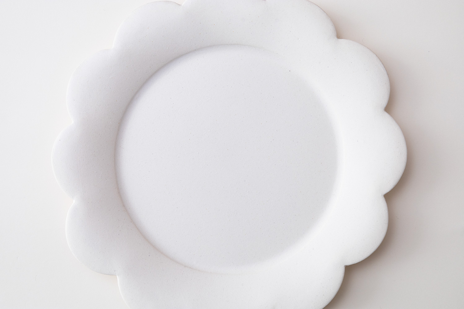 マットな触り心地で手馴染みよく大変軽やかなうつわです。質感とは裏腹に汚れにくく、扱いやすい使用になっています。シンプルな花形のデザインながら花びらの縁や裏面の仕上げ方など、大変丁寧な手仕事が伺えます。