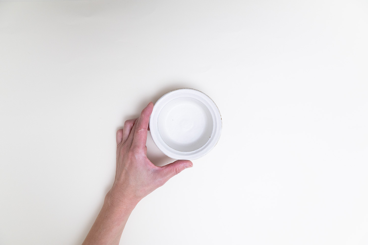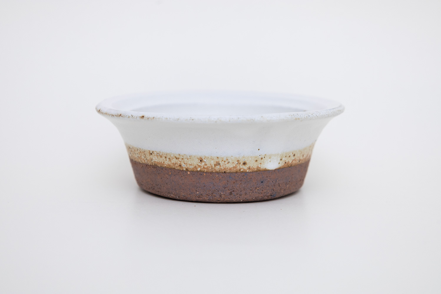 白いマットな手触りの耐熱の豆鉢です。ミニグラタンや焼きプリンにどうぞ。また普段は豆鉢としてもお使いいただけますよ。