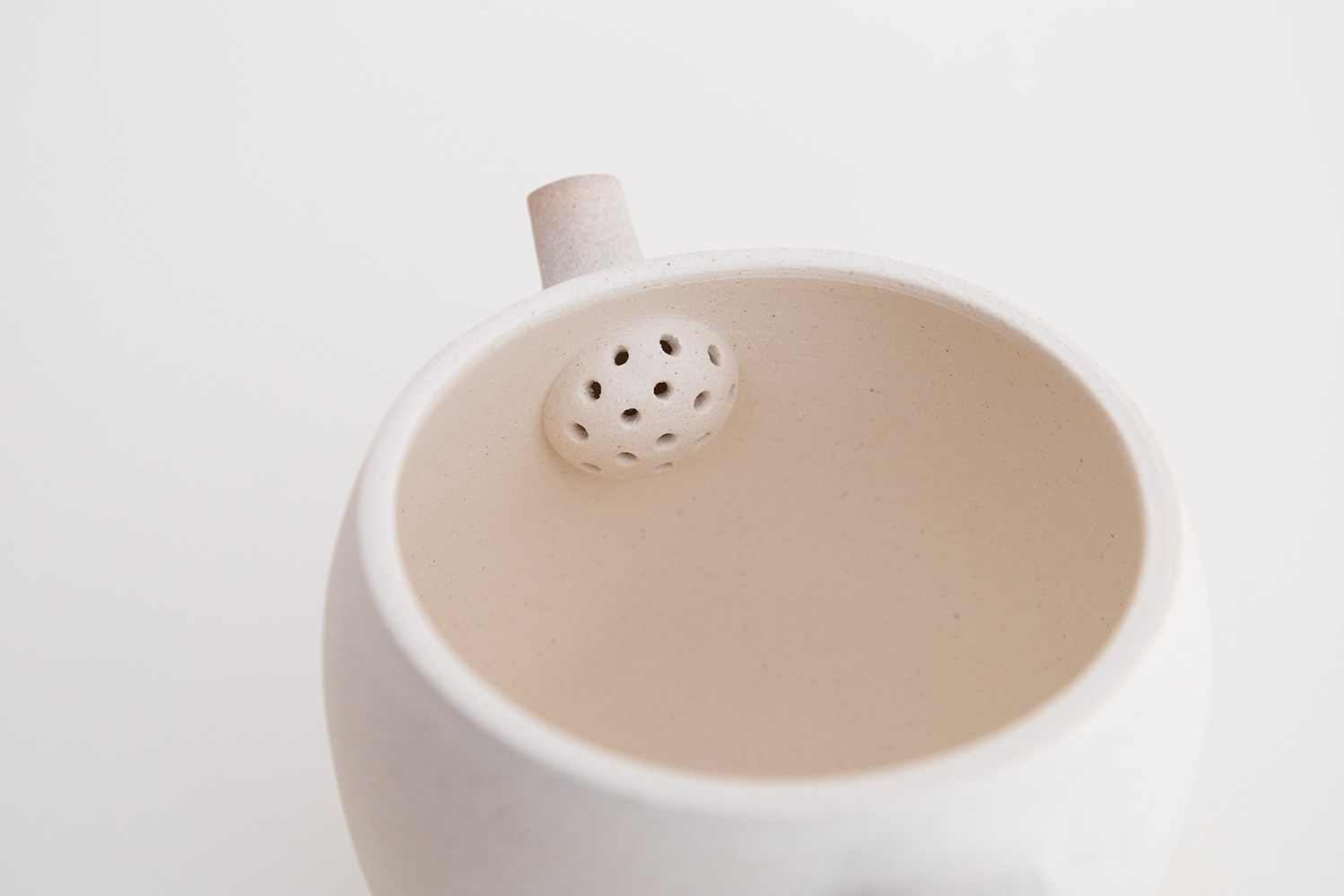 ぽってりしたフォルムと小ぶりな注ぎ口が可愛らしいポットです。持ち手もしっかりと持ちやすくなっています。マットな触り心地で手馴染みよく大変軽やかで、質感とは裏腹に汚れにくく扱いやすい使用になっています。