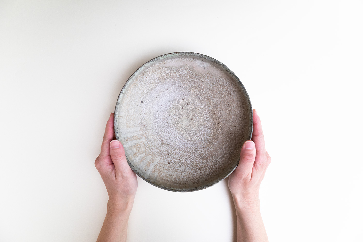 土ものならではの独特の色の変化が複雑で面白い作品です。カレーやパスタにピッタリの器です。