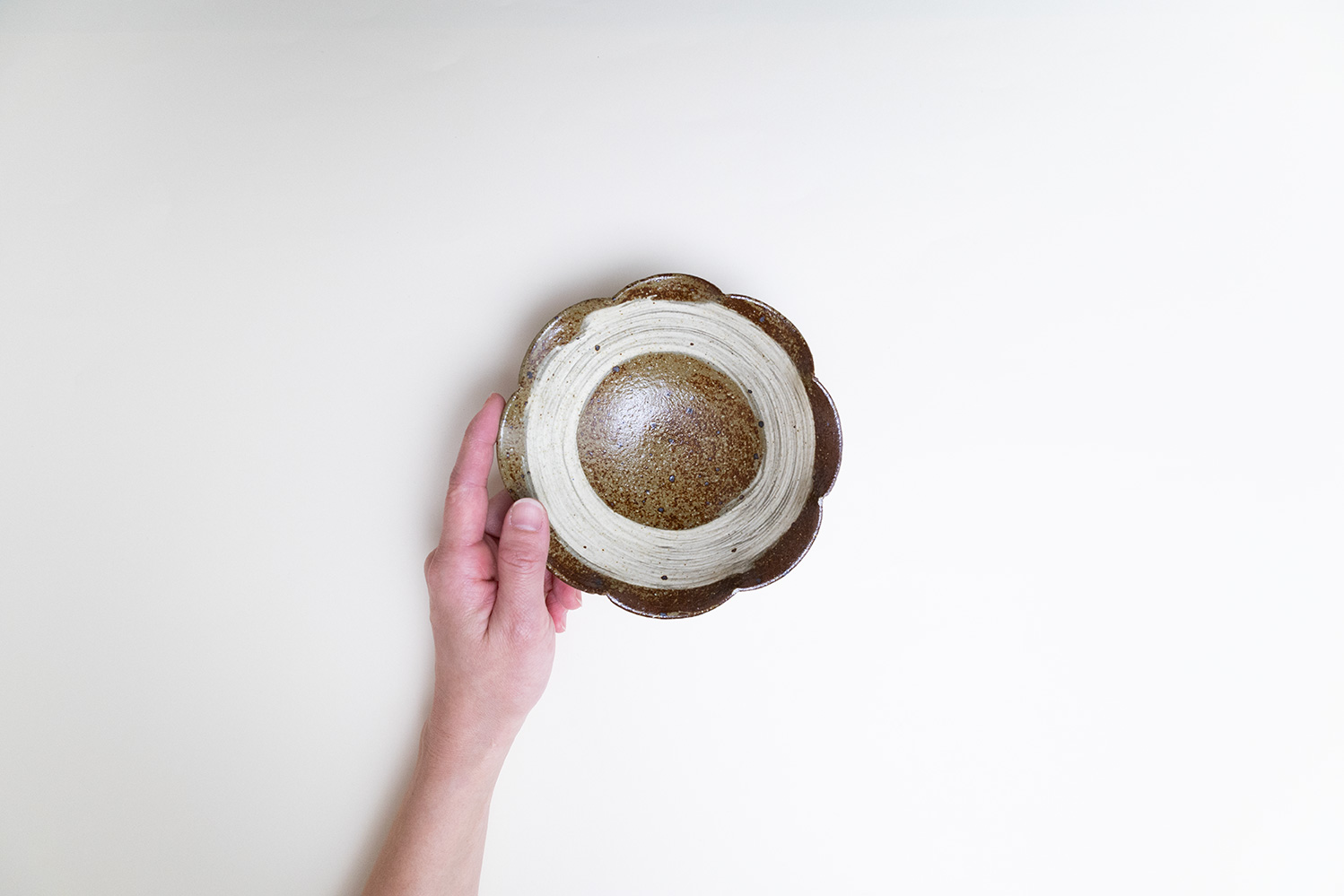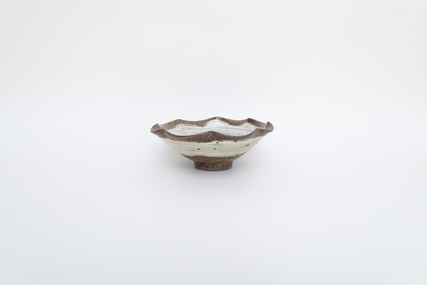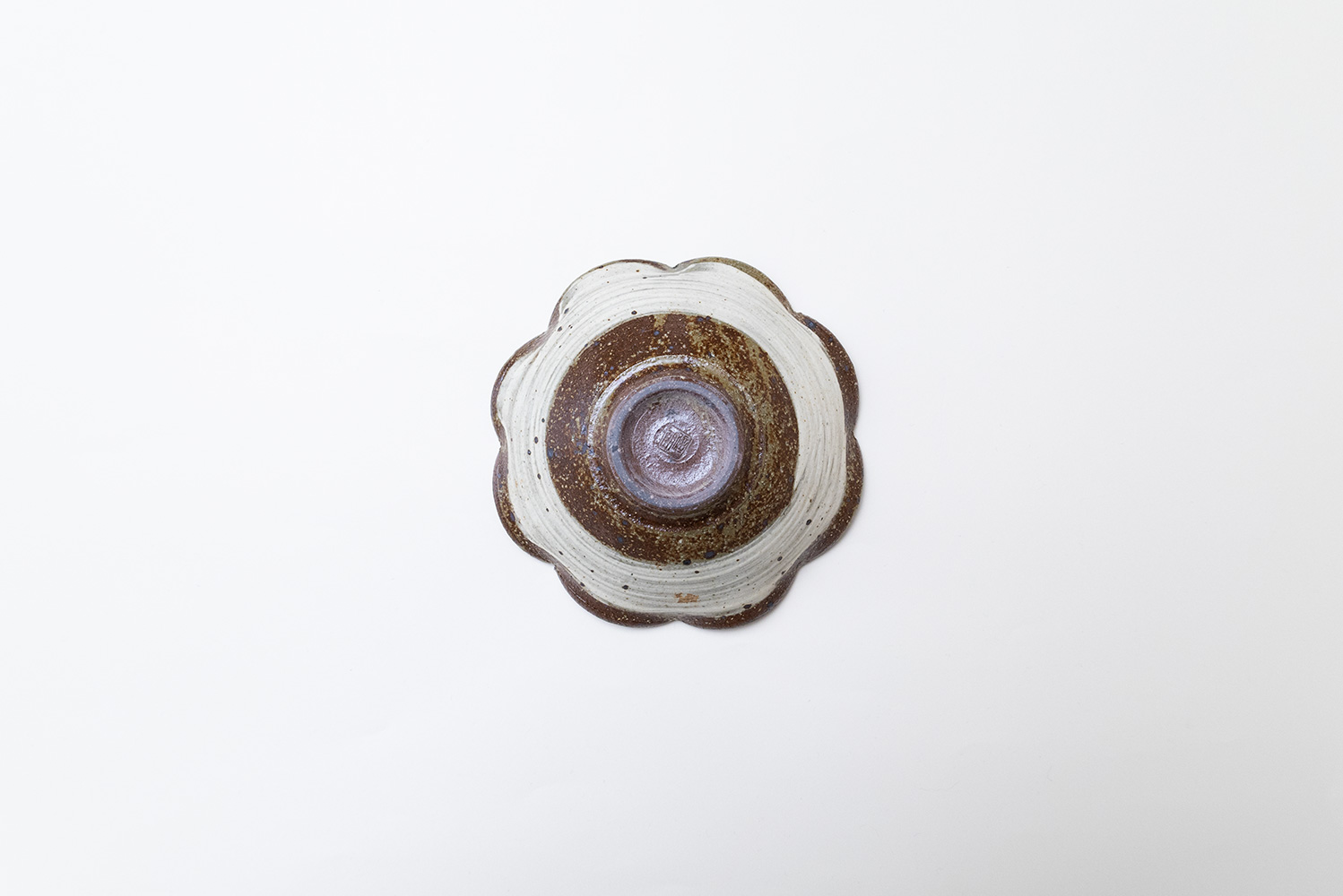 緩やかな輪花の形に力強い刷毛目柄が楽しい小鉢です。
