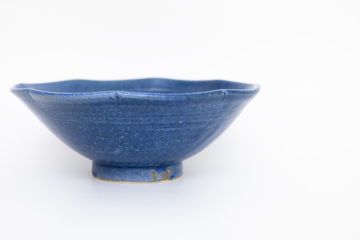 落ち着いた色味の青と柔らかいエッジの輪花が素敵な浅めの小鉢です。