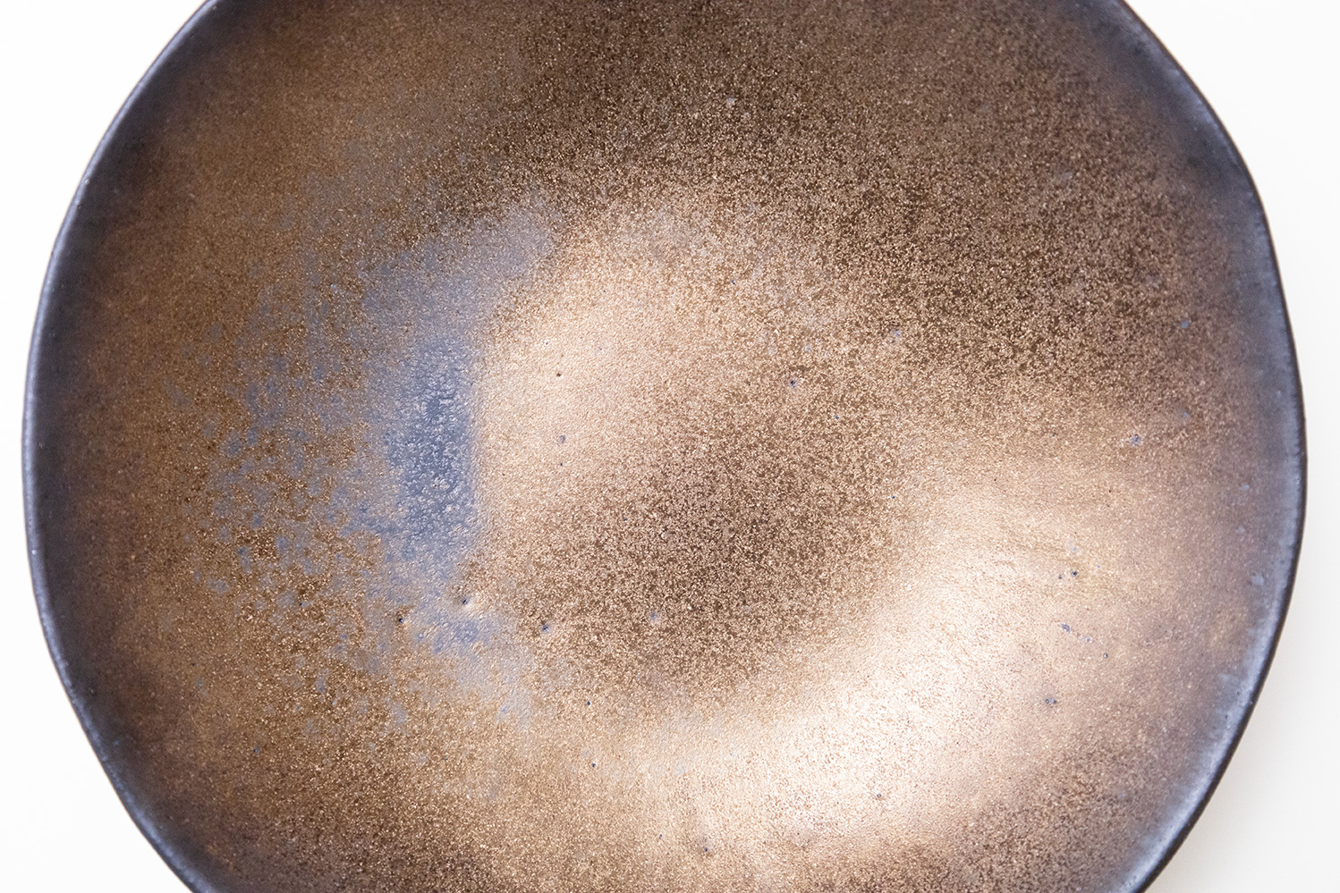 しっとりとして奥ゆかしさのある上品な光沢が美しい中川さんの金釉のうつわ。見る角度によってきらきらと輝きを放ちます。かっちりしすぎない柔らかいフォルムとのバランスが絶妙です。