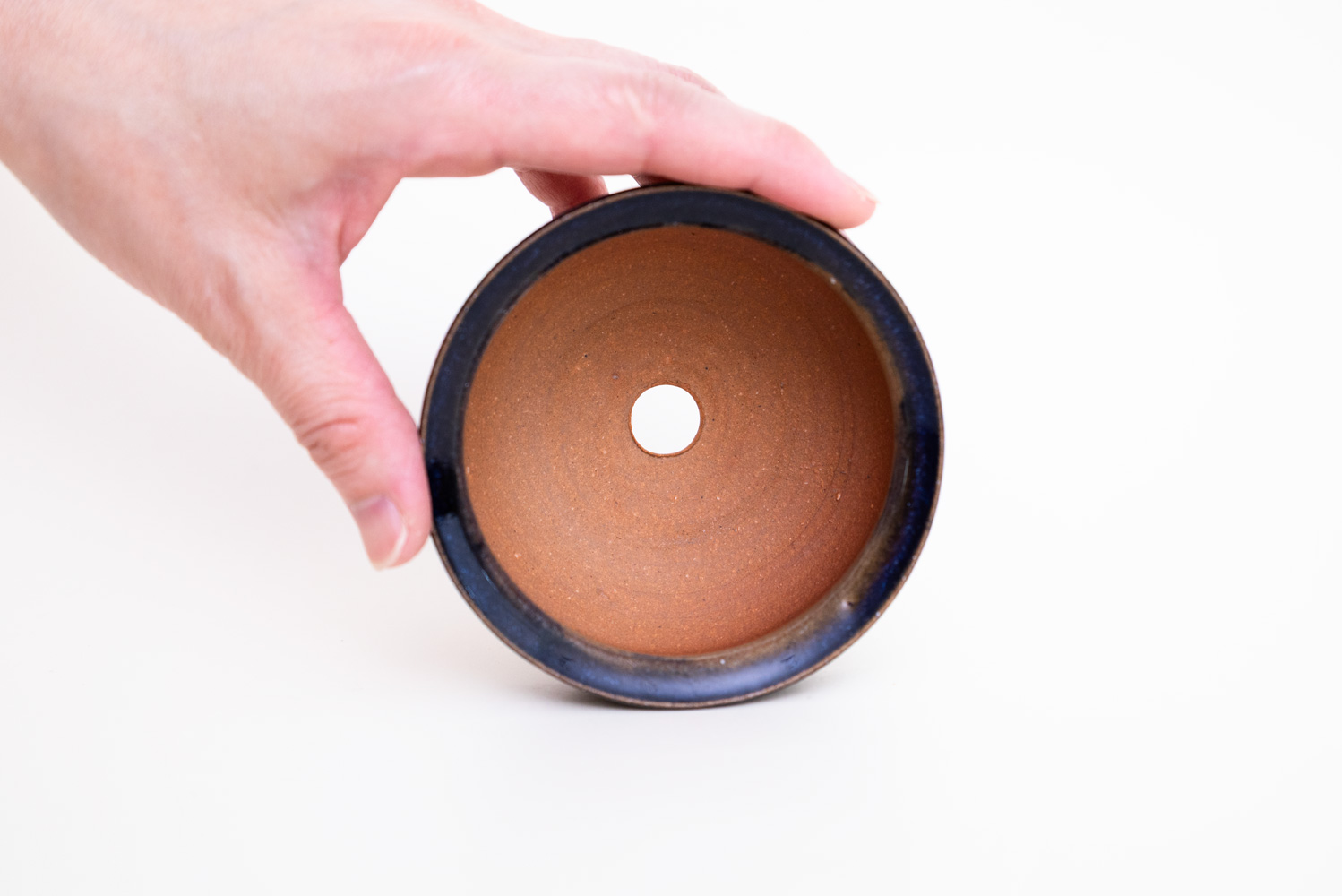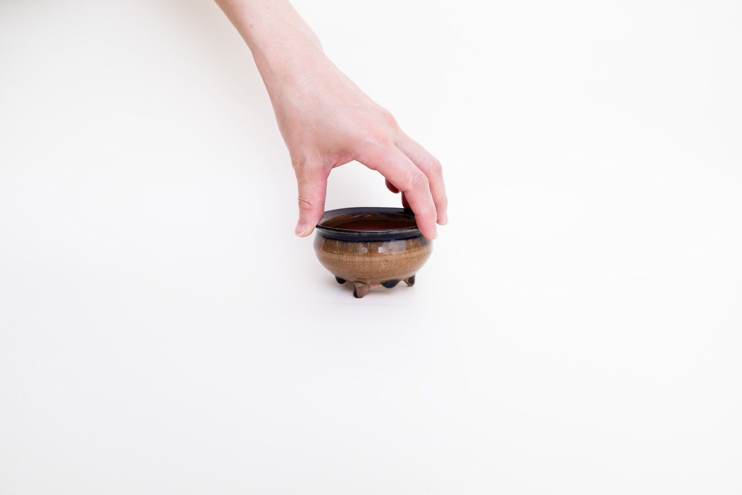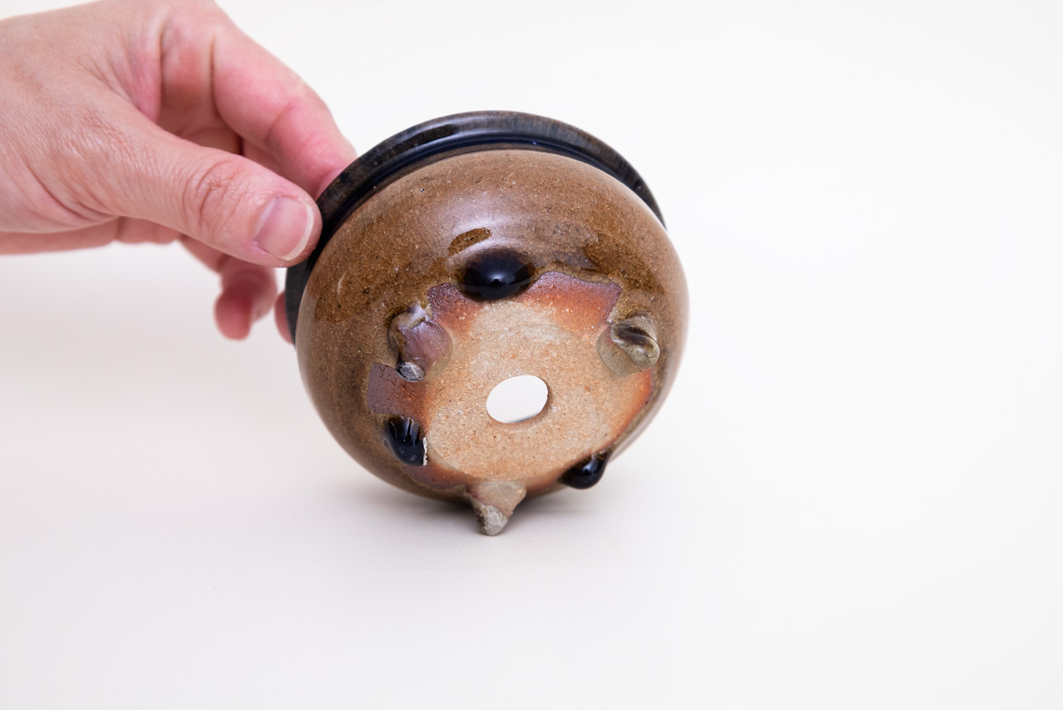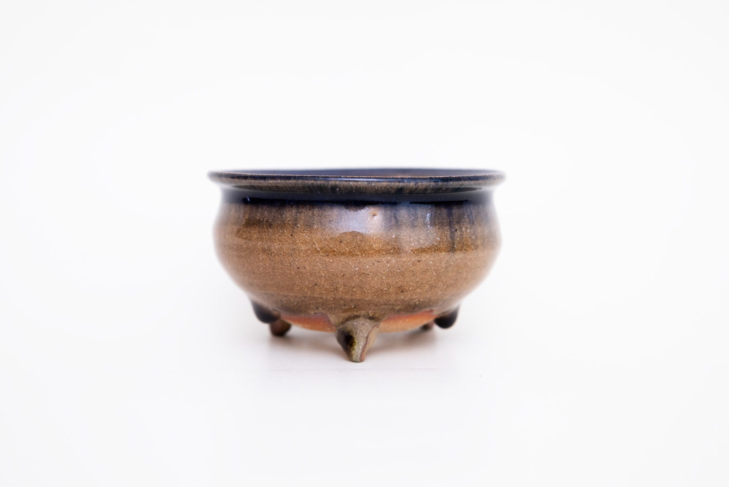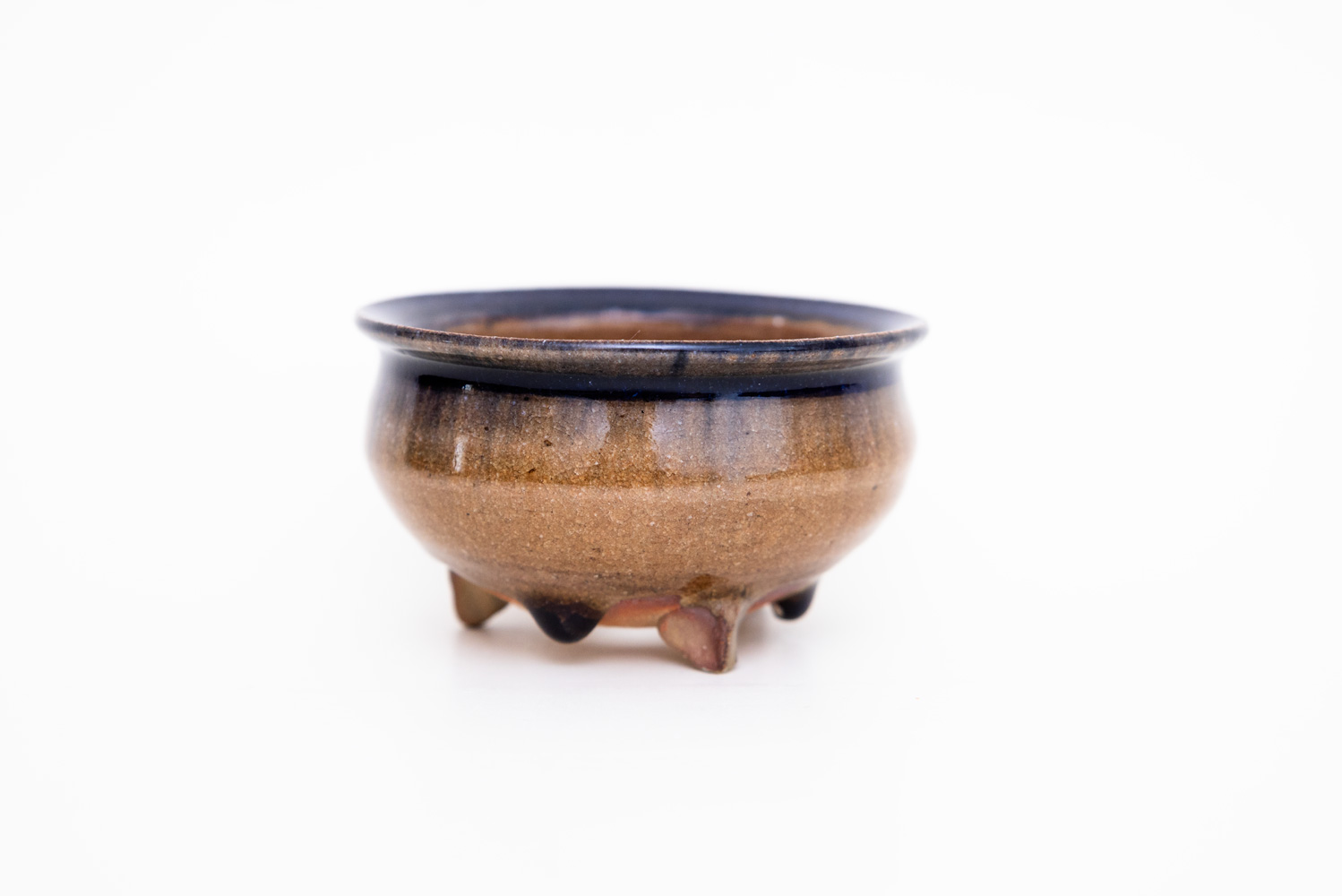 深い褐色の釉薬が複雑に溶けて混ざり合い揺らめく色彩を作っています。