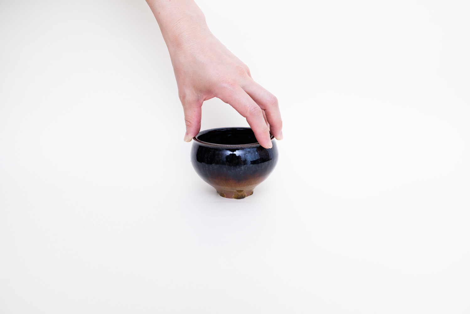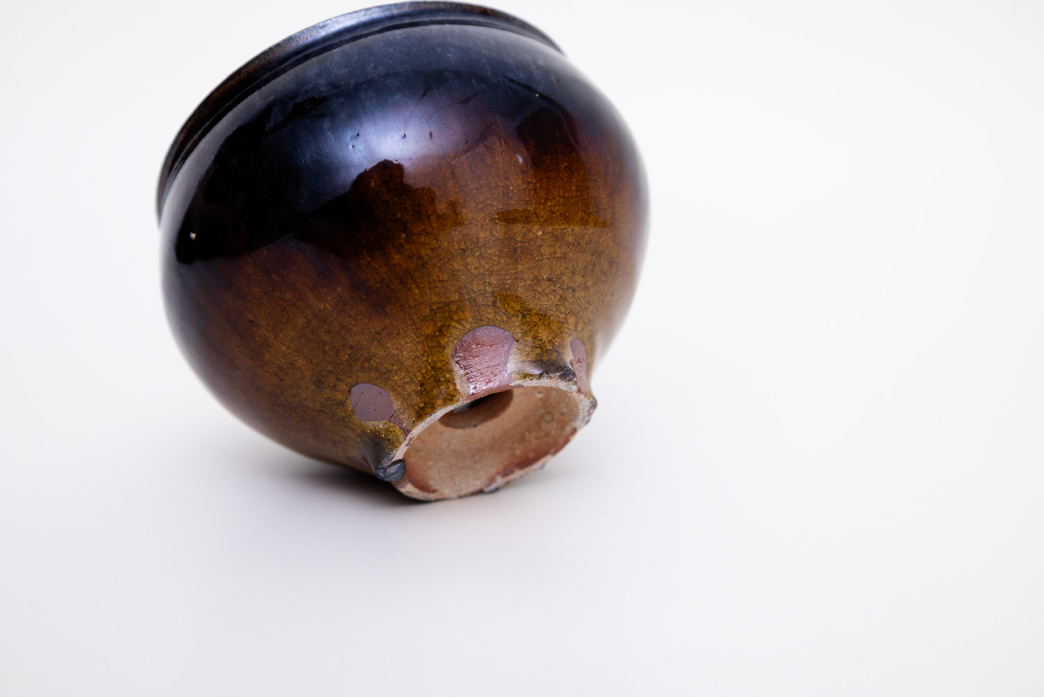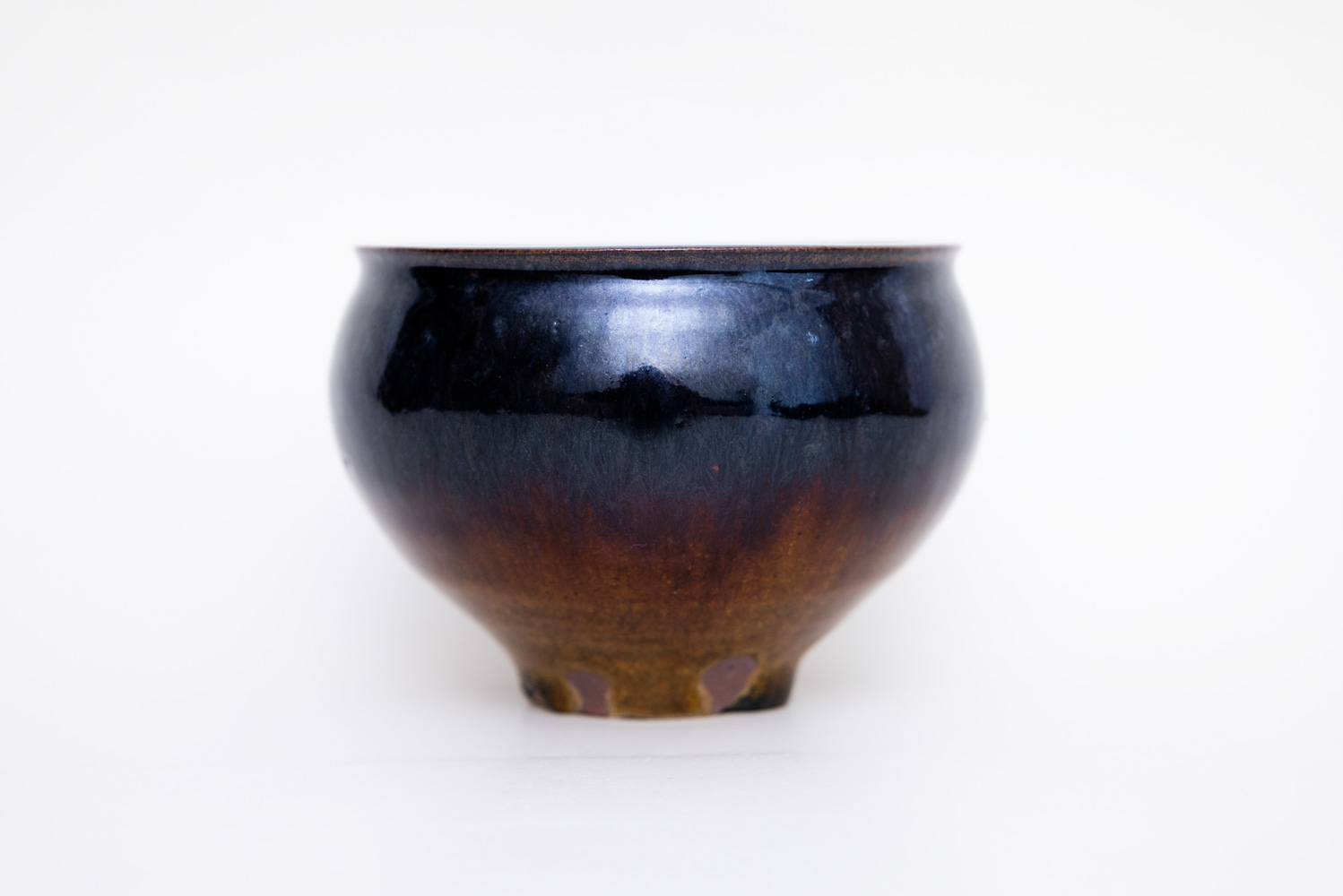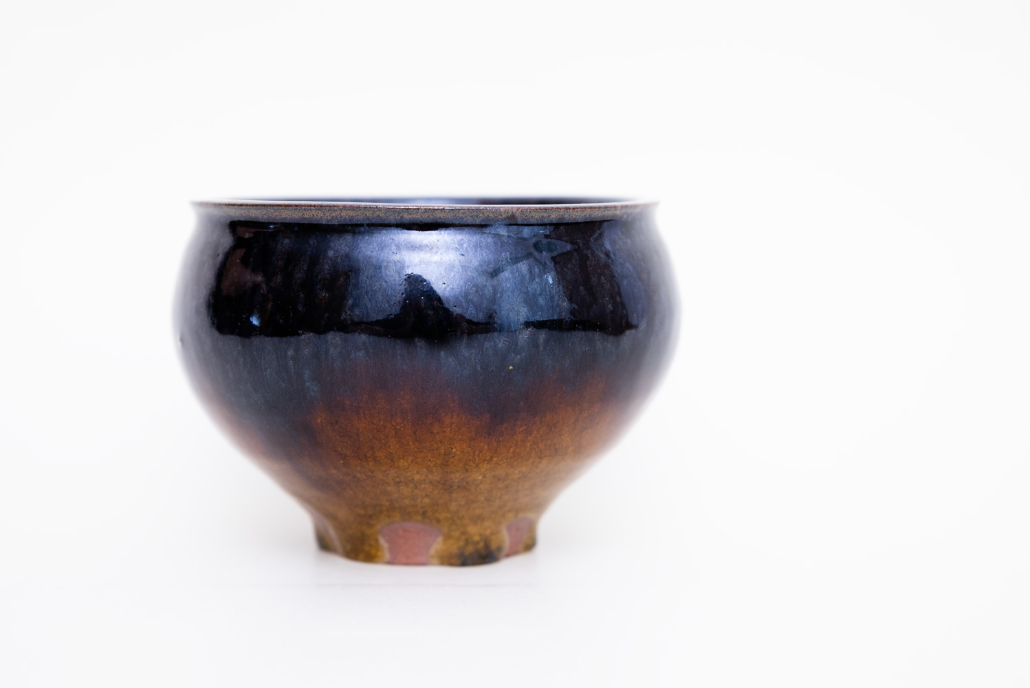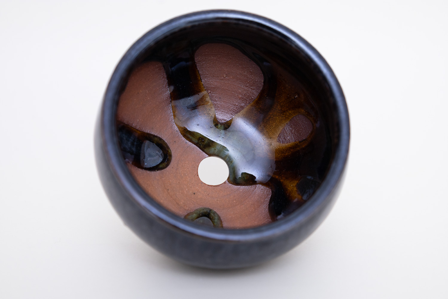 深い褐色の釉薬が複雑に溶けて混ざり合い揺らめく色彩を作っています。