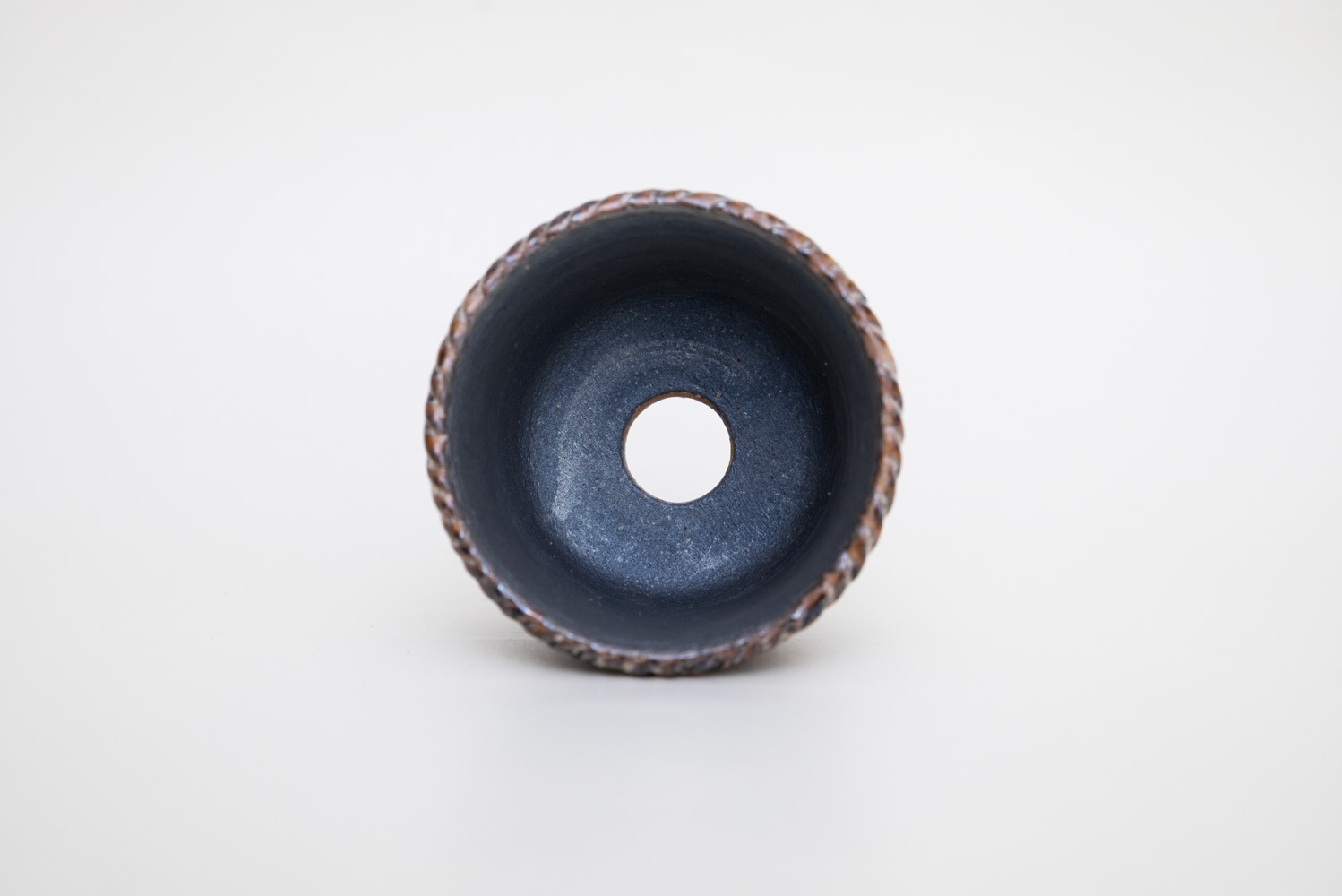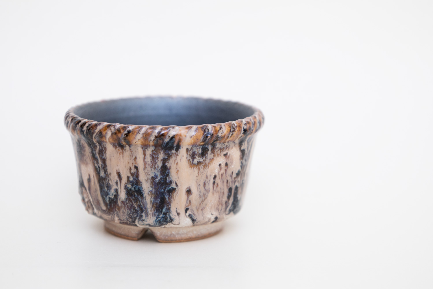 ゆっくりと液体が混ざる瞬間を眺めているような黒流。釉薬の流れを計算して、筆で丁寧にのせていくそうです。