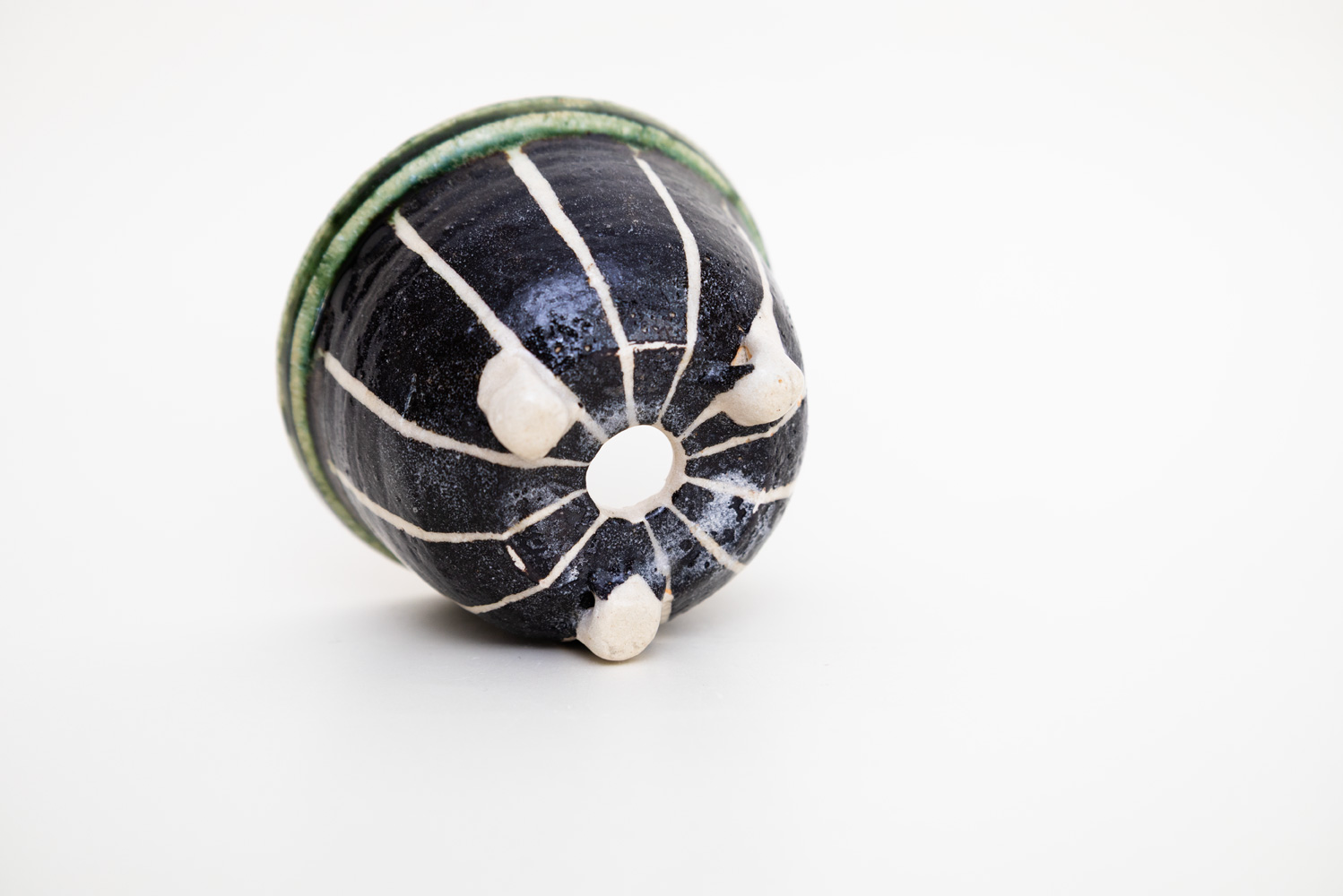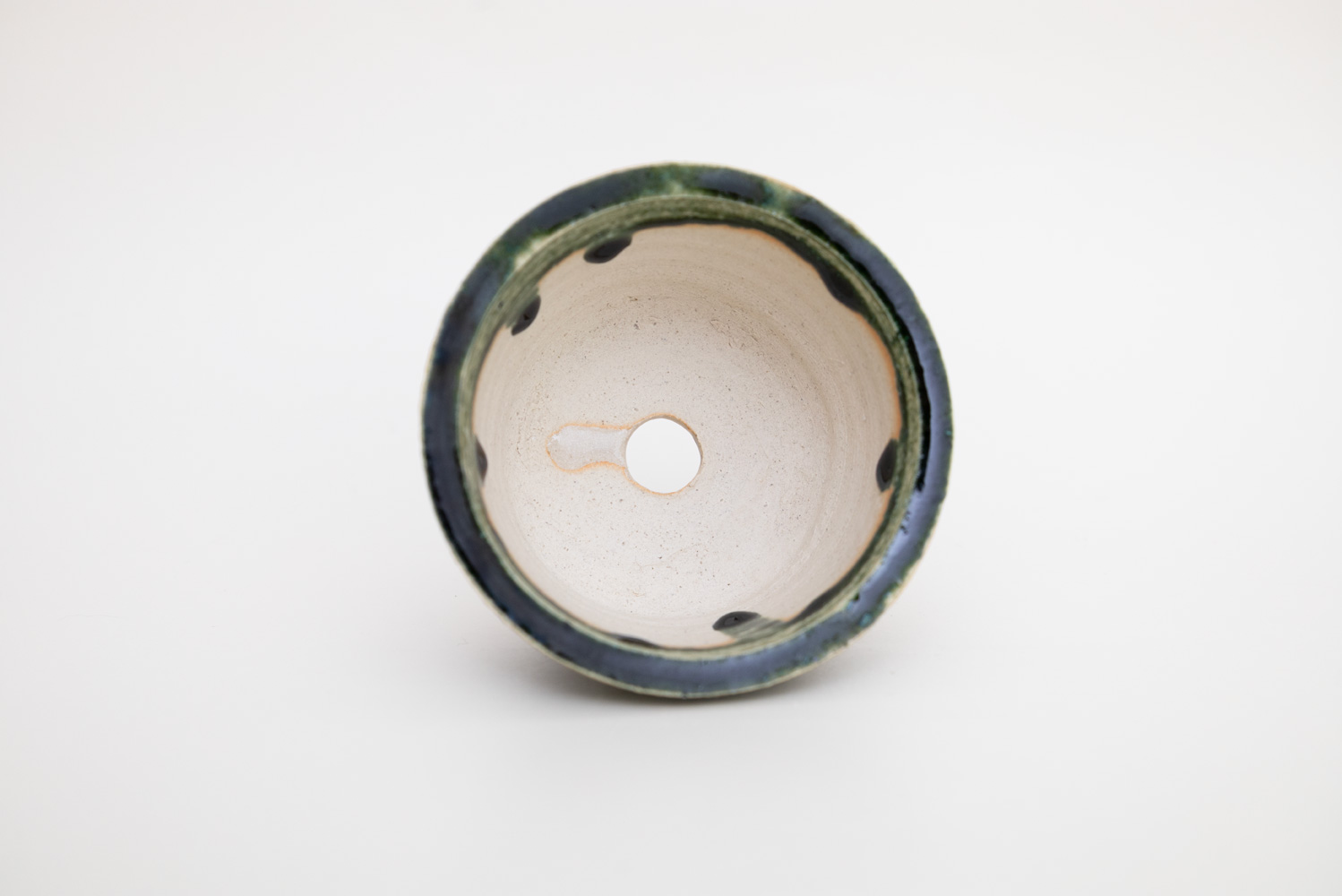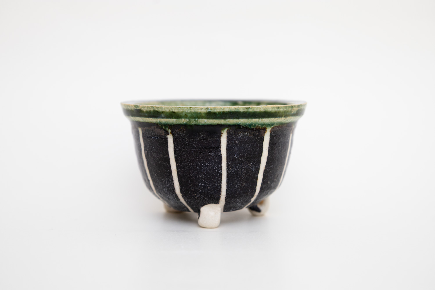 織部の緑と黒と白のラインが印象深い植木鉢です。ミニ盆栽にもどうぞ。