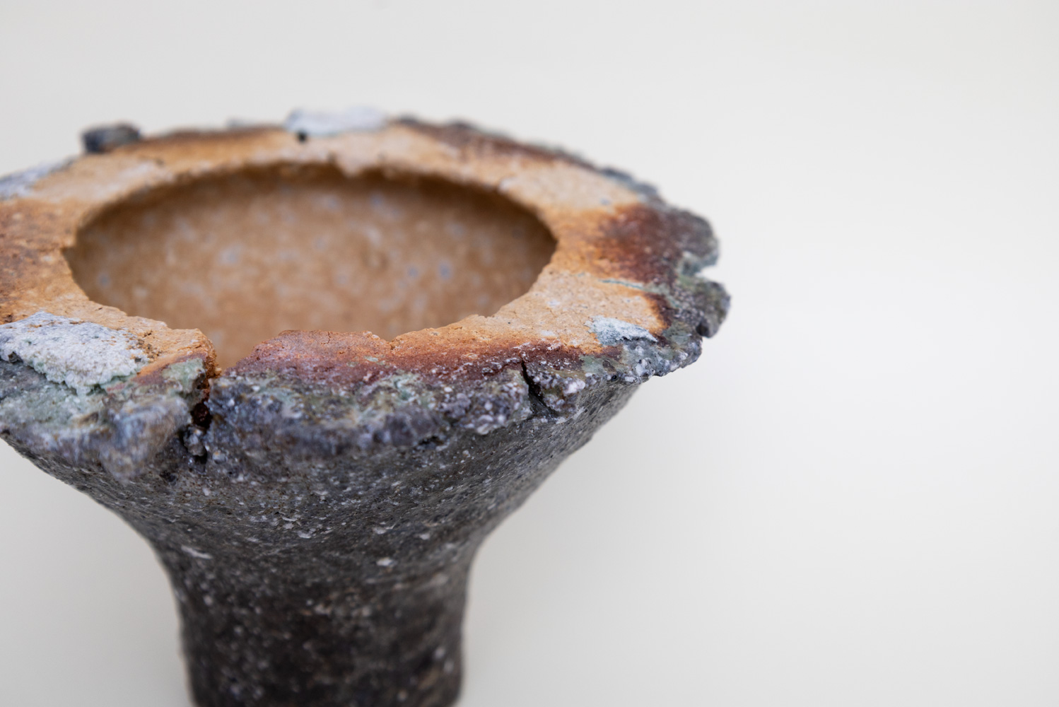 そのままの土に表れる緋色や自然釉の美しさと、荒々しくも気品のある佇まいは、大地に力強く根付く植物たちの、まさに大地を思わせる植木鉢です。