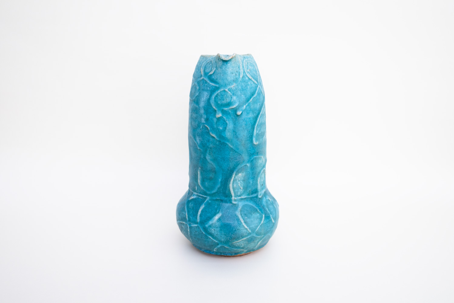 季節の花々を美しく引き立ててくれるピッチャー型の花器です。細く繊細な持ち手が印象的です。「酸化」と「還元」が出やすい環境をあえて選び、安定させないからこそ一期一会がある「藤原ブルー」。青空のようなブルーも、黄昏時のようなブルーも、どちらに振れても、魅力的です。