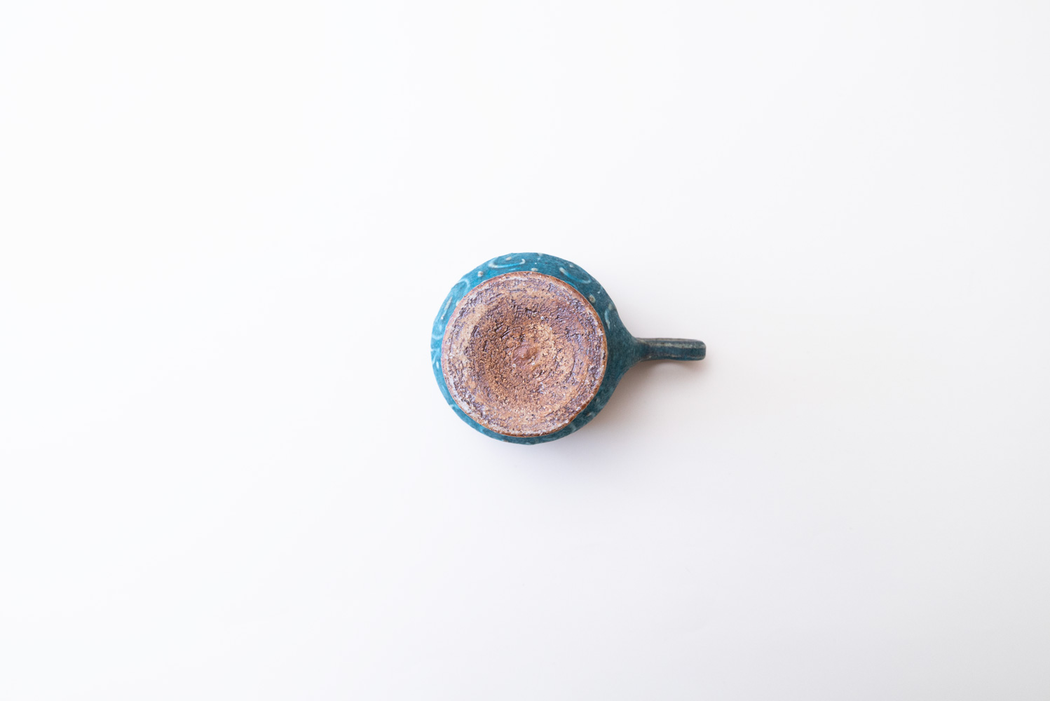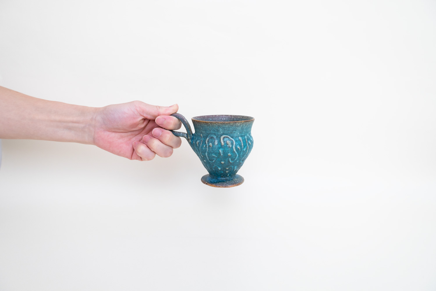 化粧土を薄めたもので描くことで、模様に独特の凹凸ができるイッチン。同じカタチでもイッチンが施されることで、また違った雰囲気や表情を見せてくれます。「酸化」と「還元」が出やすい環境をあえて選び、安定させないからこそ一期一会がある「藤原ブルー」。青空のようなブルーも、黄昏時のようなブルーも、どちらに振れても、魅力的です。