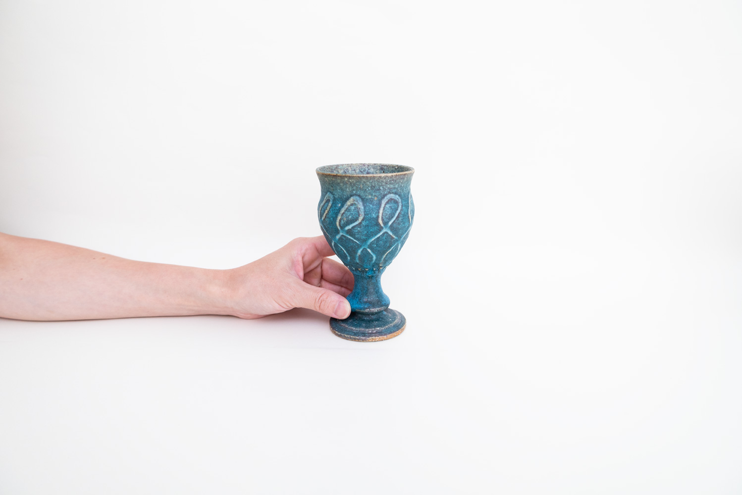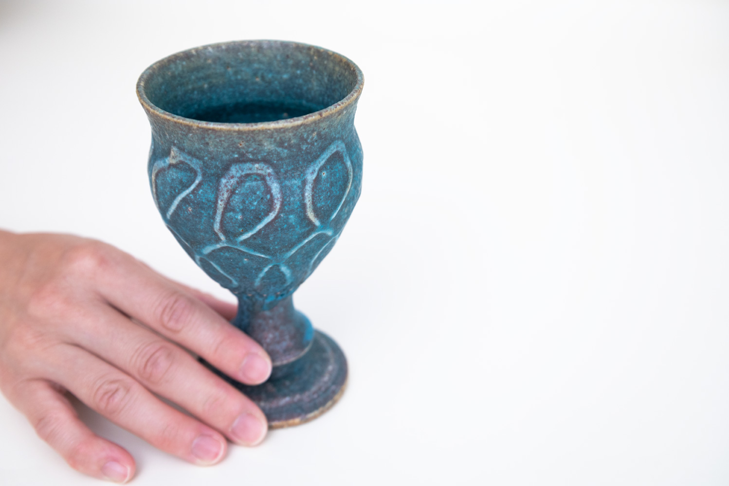 化粧土を薄めたもので描くことで、模様に独特の凹凸ができるイッチン。同じカタチでもイッチンが施されることで、また違った雰囲気や表情を見せてくれます。足の部分は削り出して作られており、削るタイミングは絶妙な粘土の乾き具合でないと難しいそうです。