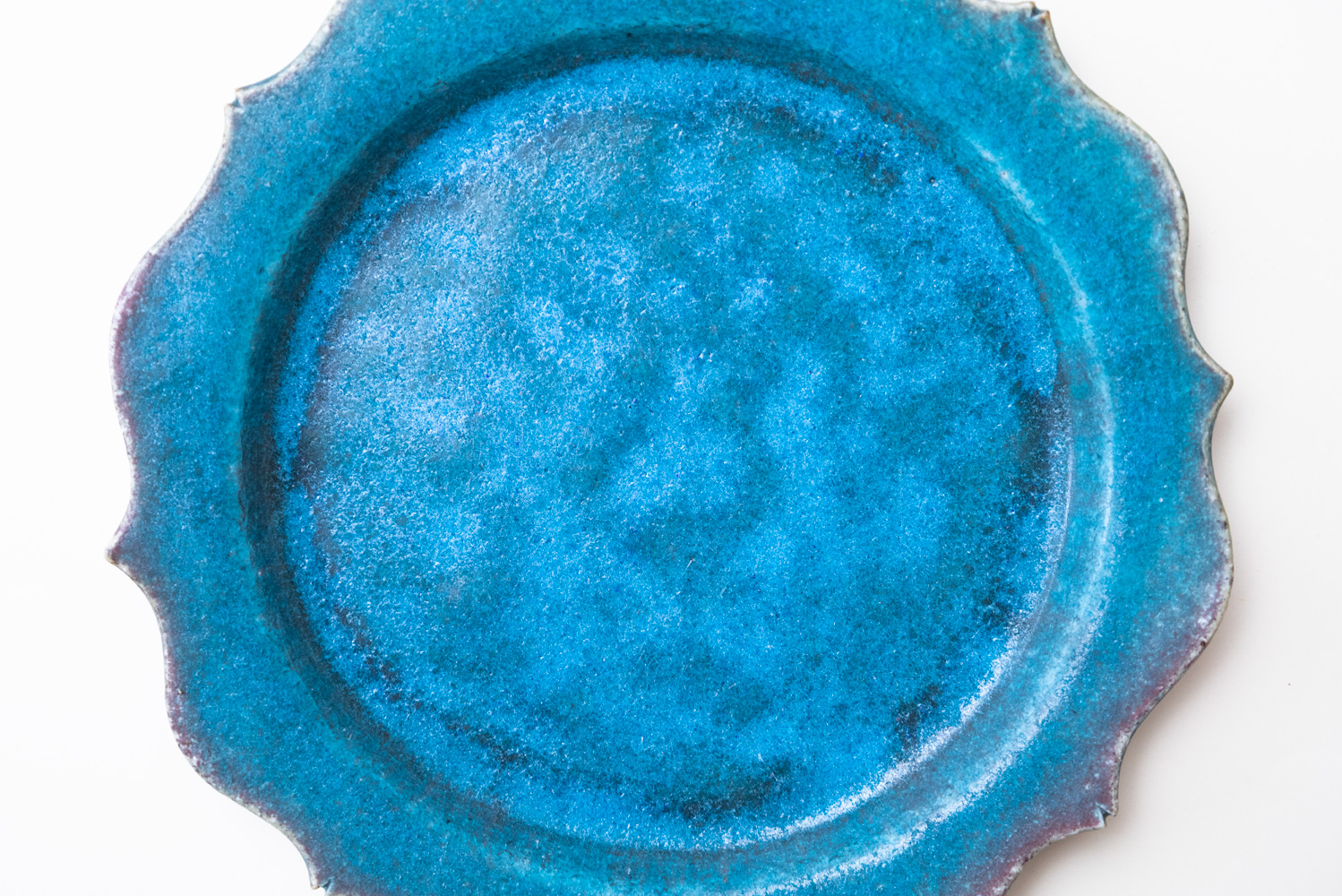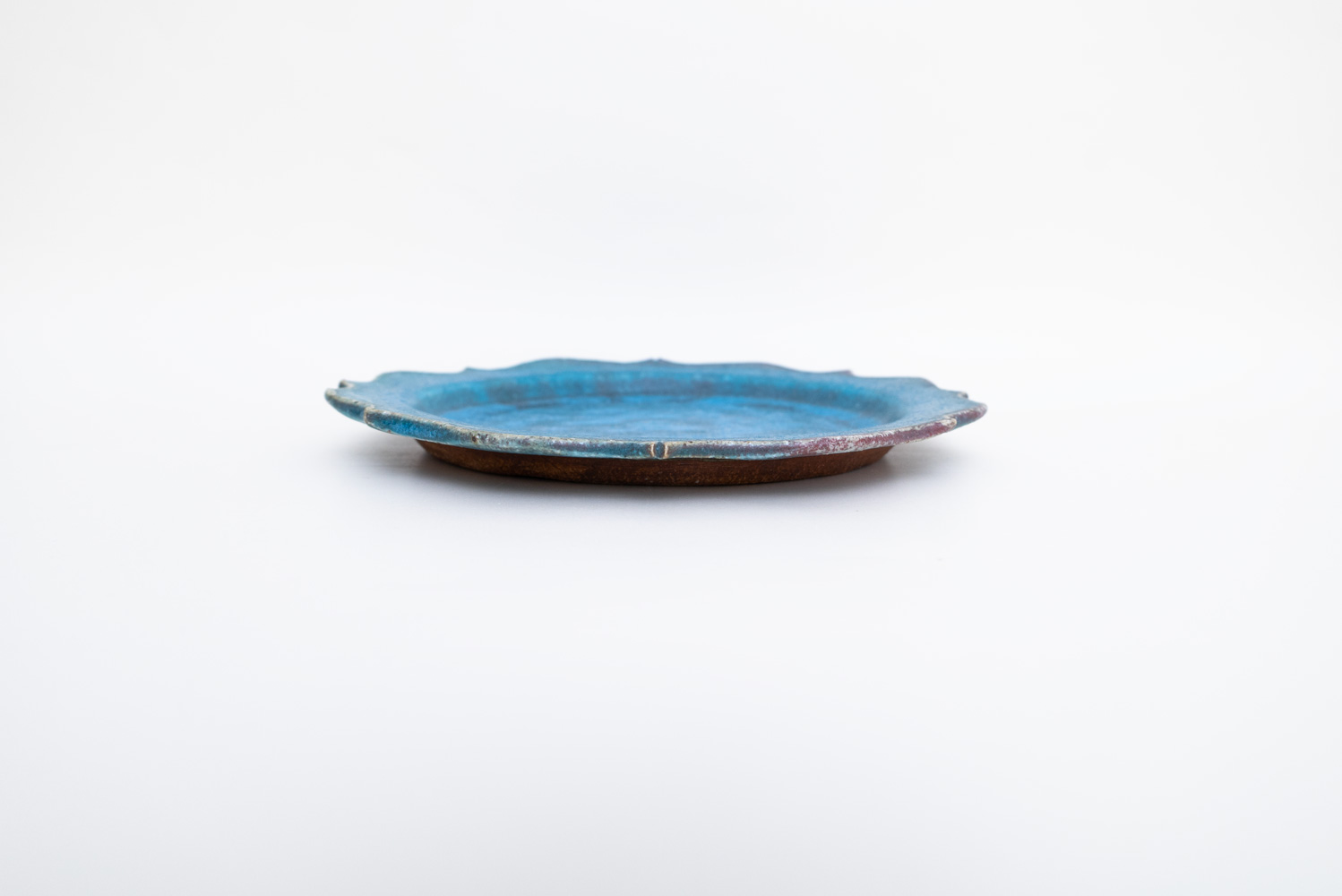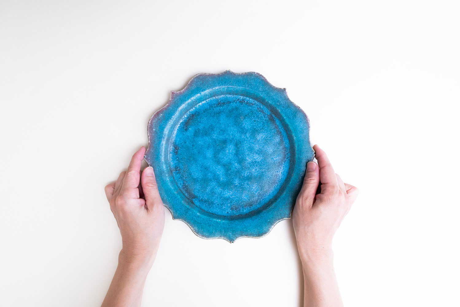 8つのトンガリが特徴的な綾花タイプのプレートです。「酸化」と「還元」が出やすい環境をあえて選び、安定させないからこそ一期一会がある「藤原ブルー」。青空のようなブルーも、黄昏時のようなブルーも、どちらに振れても、魅力的です。