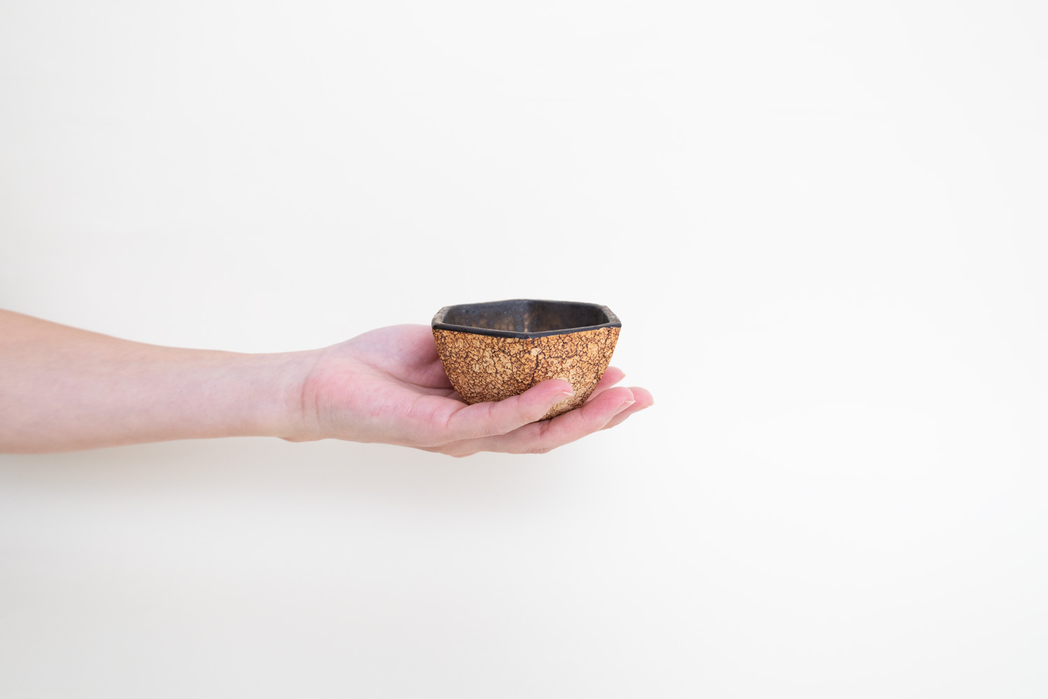 コルク風の柔らかな質感と滑らかな手触り。特徴的な外側と上品な光沢が美しい内側の金釉が絶妙です。