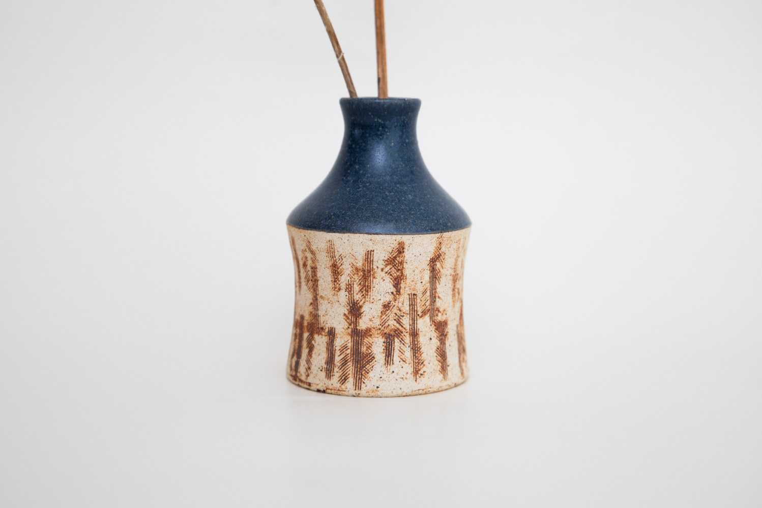 中川さんの代表的な作風のコルクシリーズと同じ素地で作られており、マットな青い釉薬とのコントラストが素敵です。