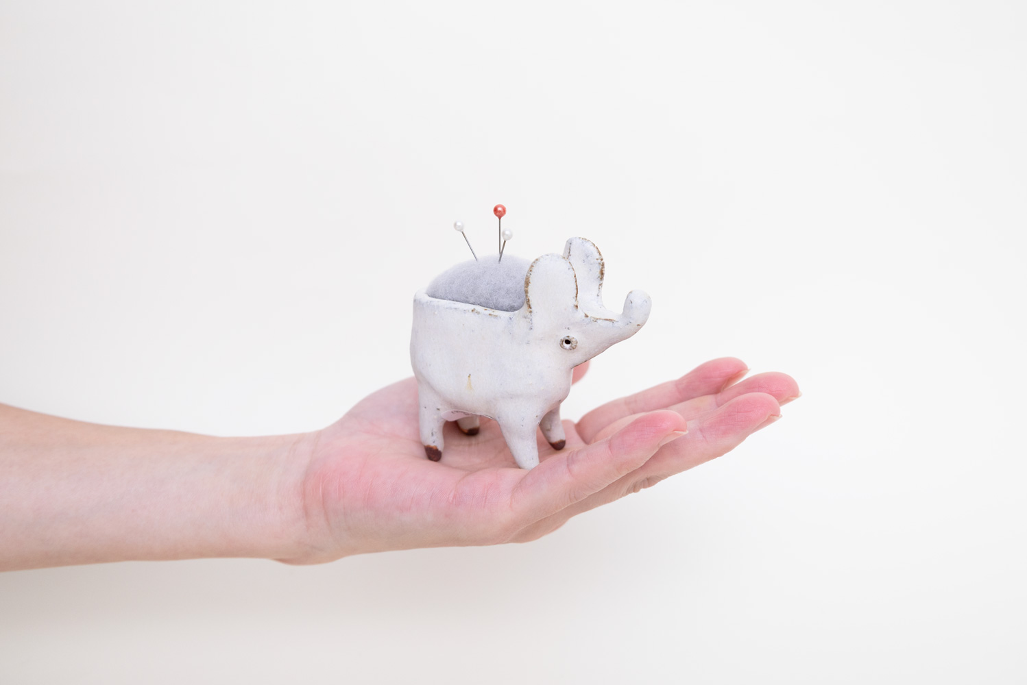 マチ針を刺すとハリネズミになります。オブジェと実用の融合ですね。お裁縫のお供にぜひどうぞ!!