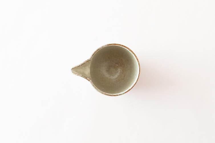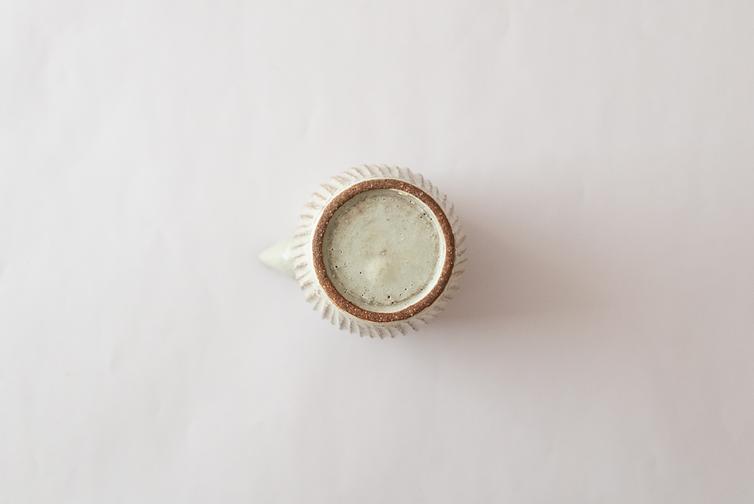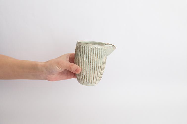 しのぎが手に馴染み持ちやすく、注ぎ心地もとても良い作品です。粉引の風合いとシャープな注ぎ口は美しく、少しふっくらとしたフォルムはどことなくかわいらしい感じがします。