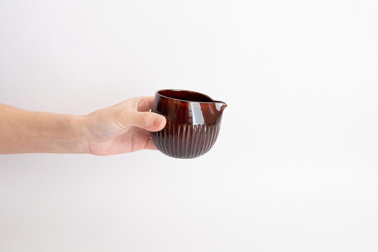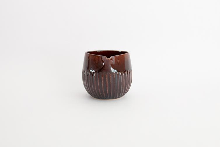 丸みのあるシルエットと半ばまでのしのぎのバランスがかわいらしい片口です。美しいしのぎと深い飴色をお楽しみください。