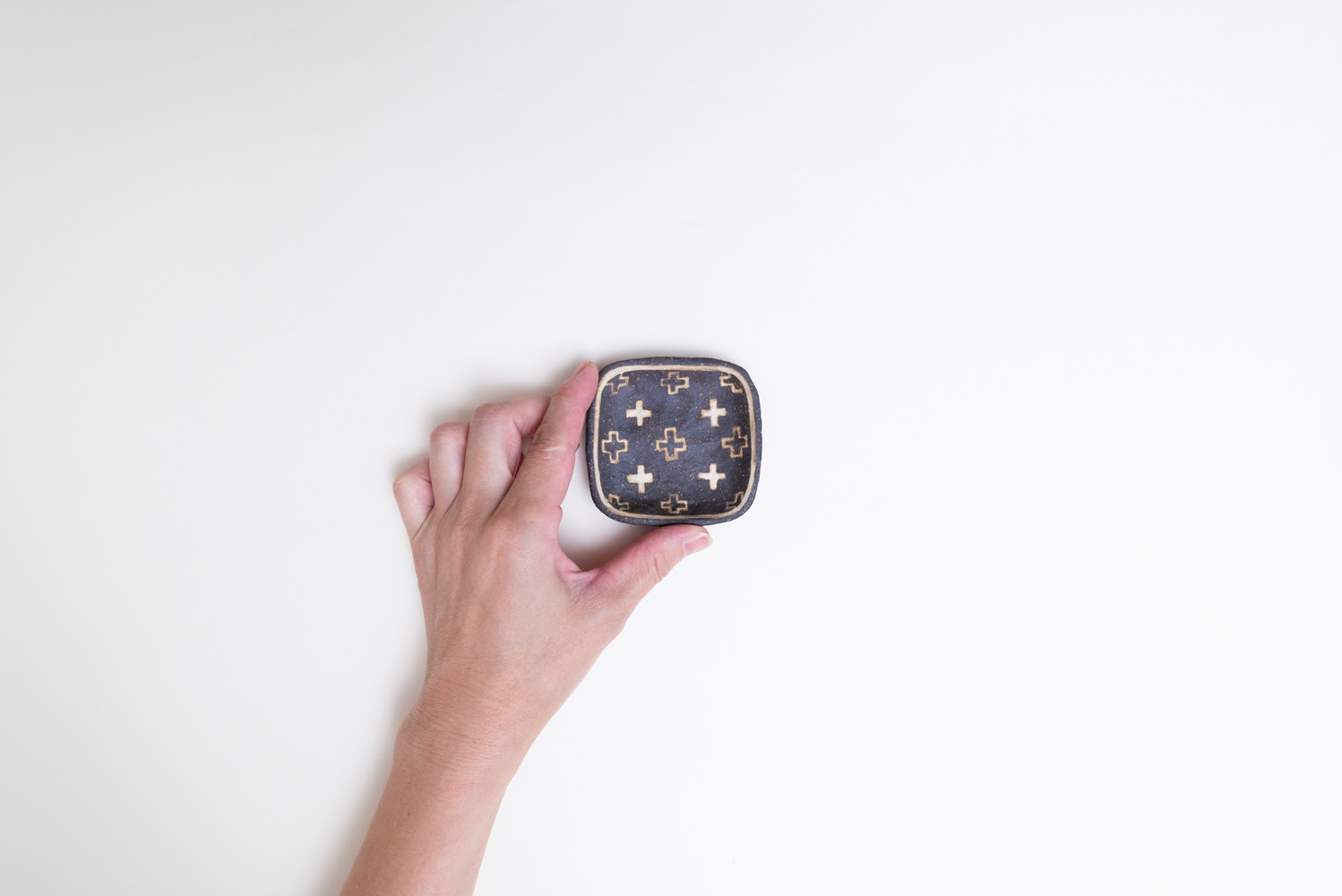 ざらりとした質感の土に化粧泥を塗ったり削ったりして、絵柄が描かれています。おやつをのせたり、おかずを一品のせたり、色々と活躍してくれそうです♪