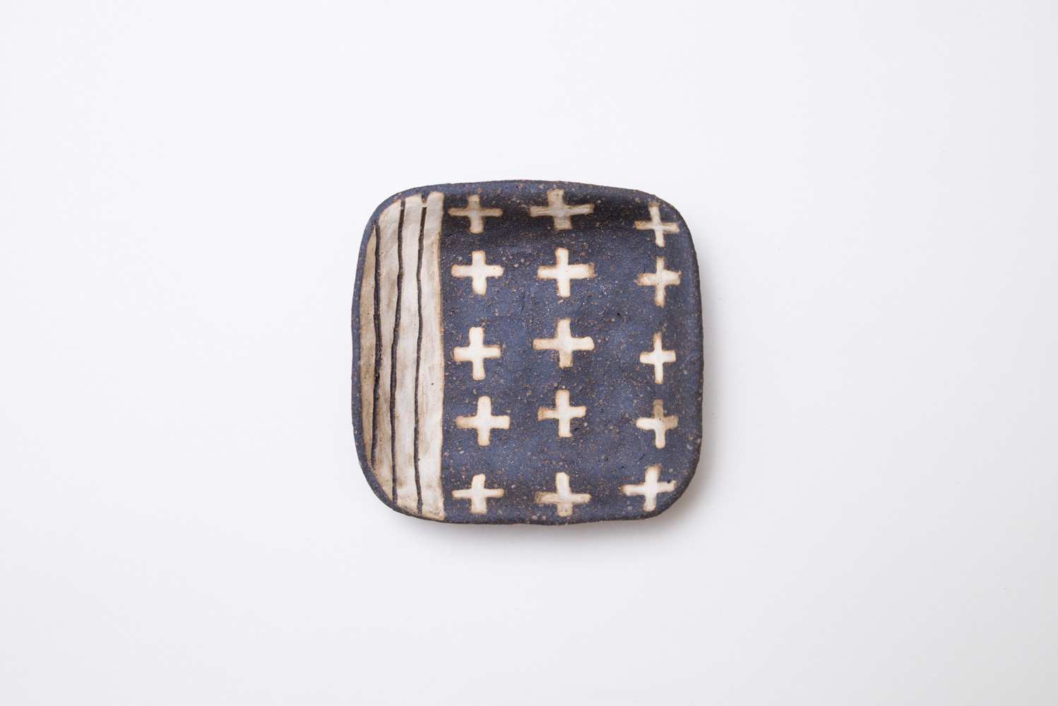 ざらりとした質感の土に化粧泥を塗ったり削ったりして、絵柄が描かれています。おやつをのせたり、おかずを一品のせたり、色々と活躍してくれそうです♪