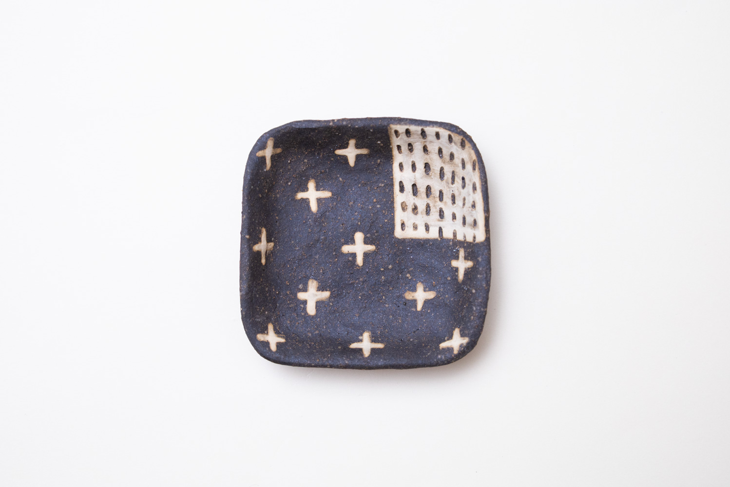 ざらりとした質感の土に化粧泥を塗ったり削ったりして、絵柄が描かれています。おやつをのせたり、おかずを一品のせたり、色々と活躍してくれそうです♪