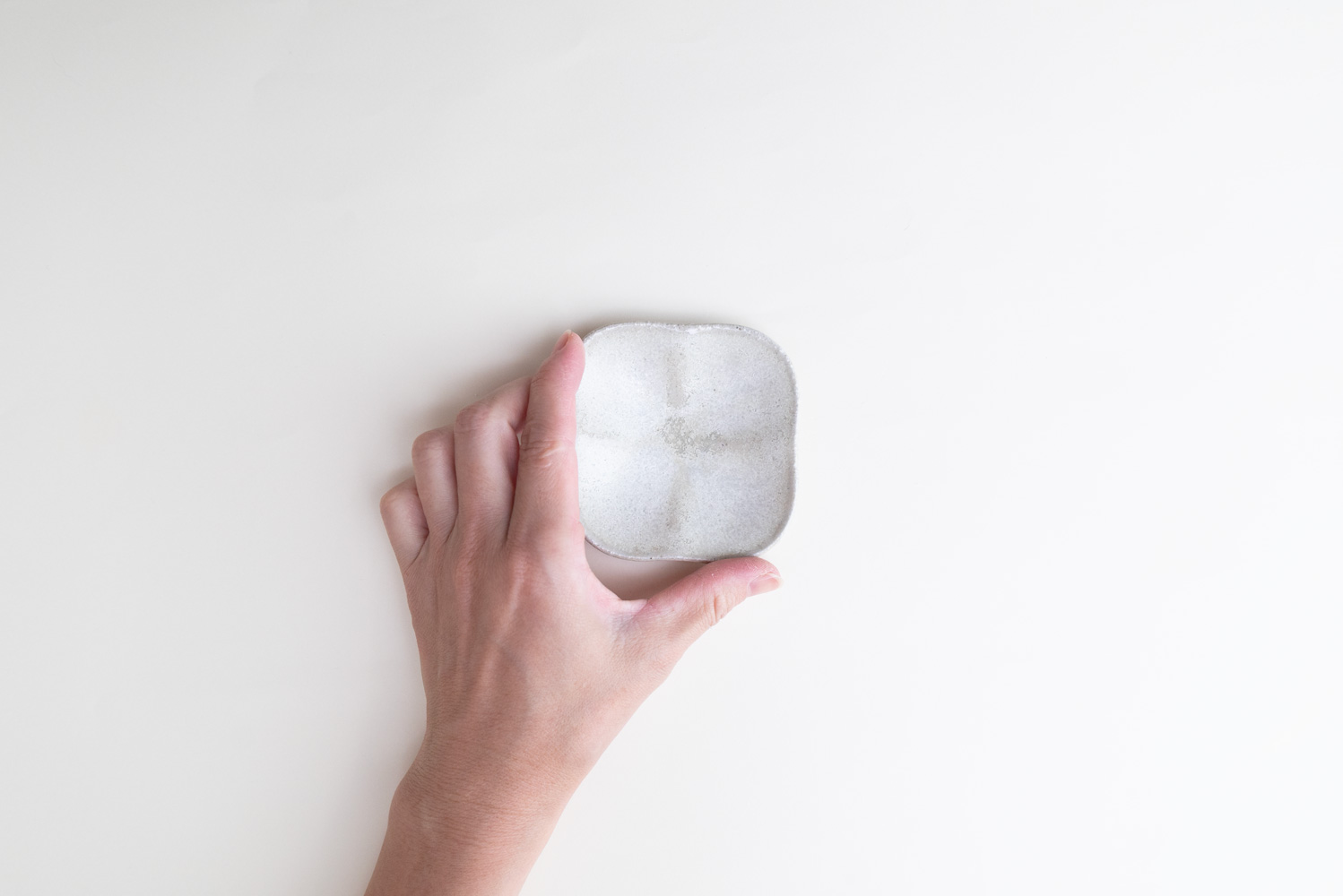 もこもことした丸い花びらのような形の豆皿サイズのお皿です。見た目がかわいいだけでなく、丈夫で軽くて重なりも良いので、日々の料理をストレスなく楽しんでお使いいただけると思います。