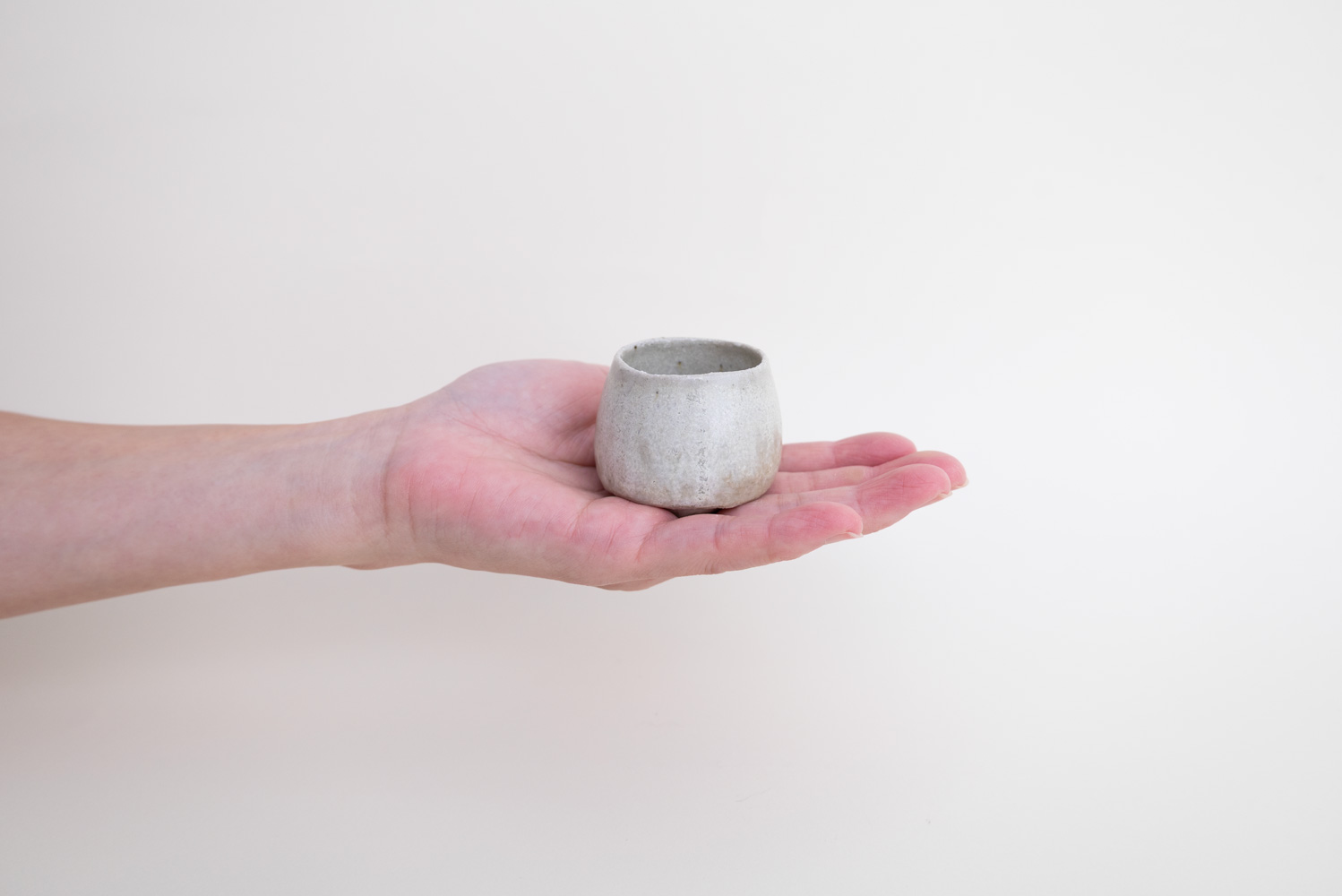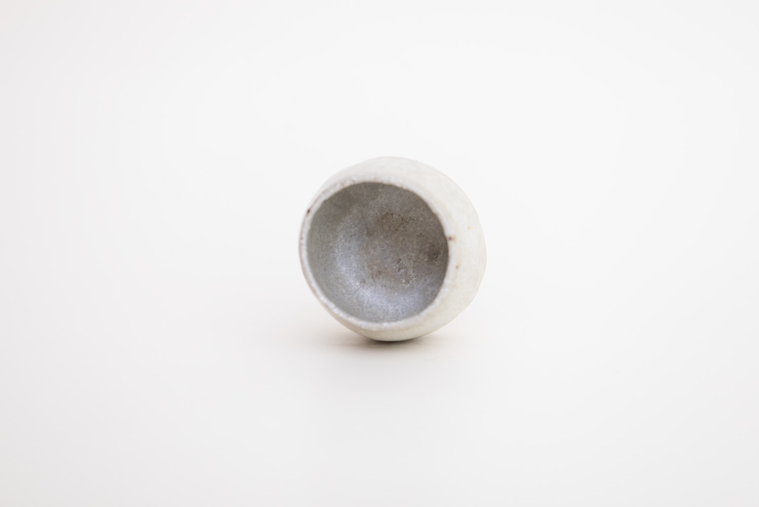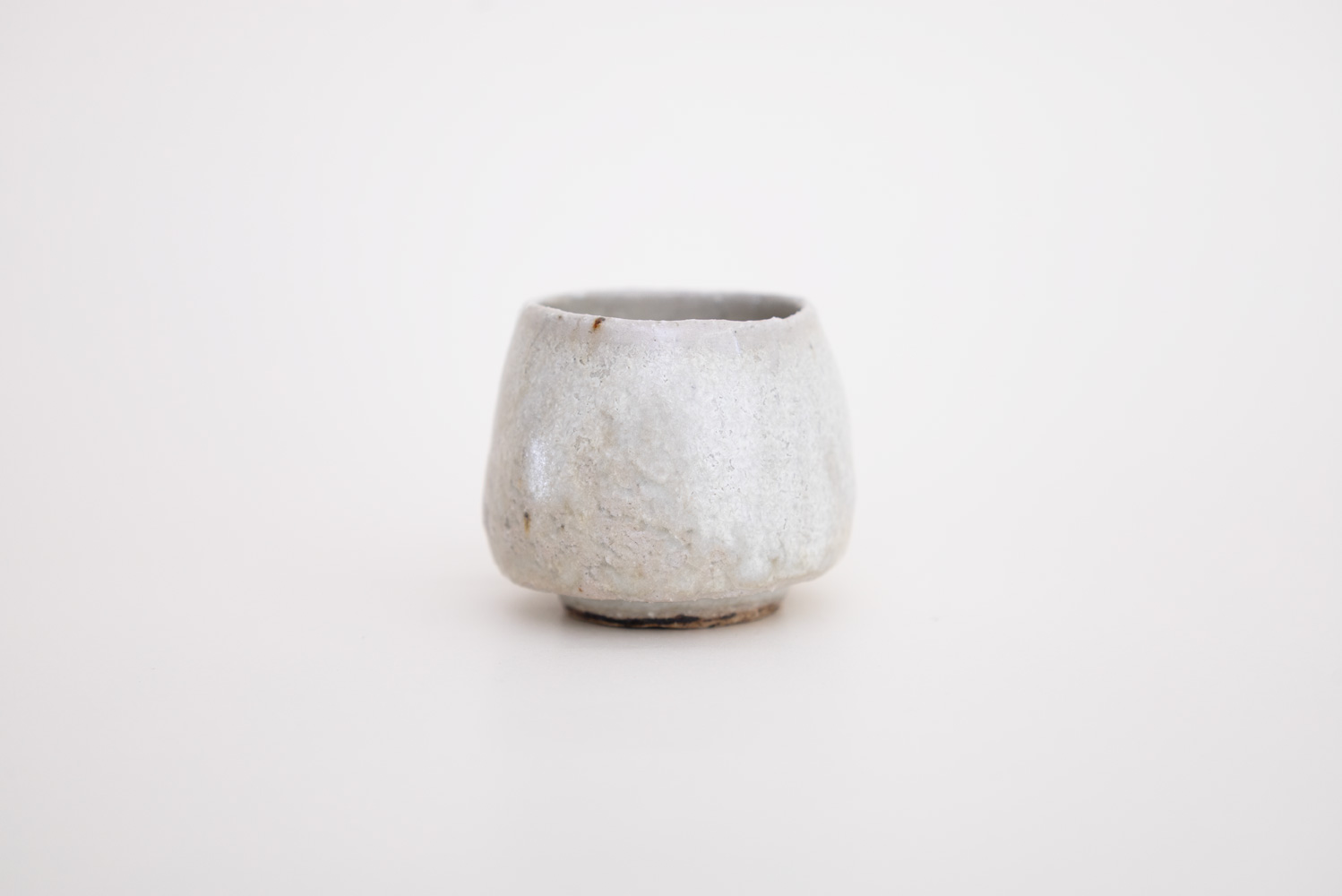 手のひらにすっと収まる、素朴であたたかみのあるグイ呑みです。ろくろではなく一つ一つ手でひねり成形されており、自然な歪みやゆらぎがそのまま景色として楽しめます。