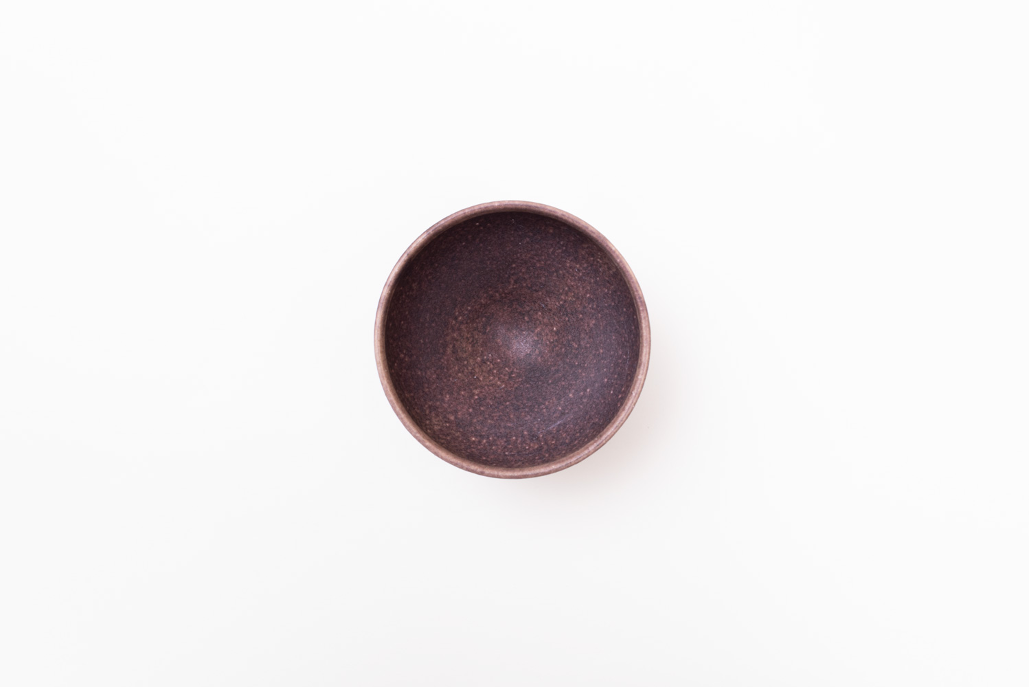 深みのあるマットな紫色から見え隠れする素地が個々の器の特徴となり、一つとして同じ景色にはならない焼き物の良さが存分に現れた作品です。一見使うには難しそうな色味に思えますが、地味な色の食材も不思議と引き立ててくれます。渋さの中に優しさや可愛さのある松本さんらしい作品です。また、器の側面には松本さんのサインが入っています。