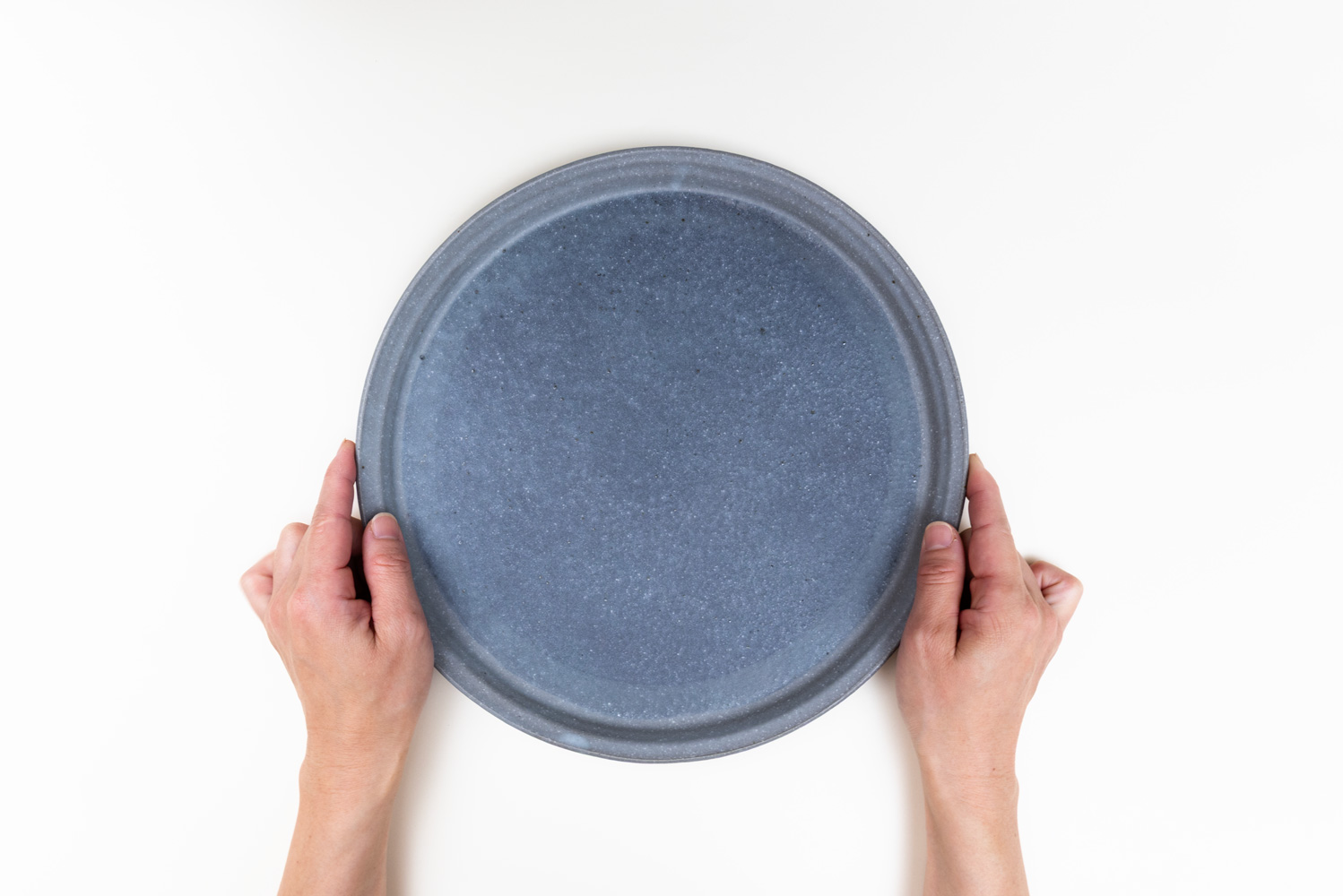 直径約29cmの存在感のあるサイズながら、縁に“ほんの少しの立ち上がり”をつけることで、両手でも片手でも持ち上げやすいつくりになっています。器を運ぶとき、手が自然とかかる心地よさは、日々の使い勝手をそっと支えてくれるポイントです。プレート面は広くフラットで、料理をより美しく引き立てるデザイン。ワンプレート料理、サラダや前菜の盛り合わせ、ケーキや焼菓子の大皿使いなど、食卓での活躍の幅がとても広い器です。