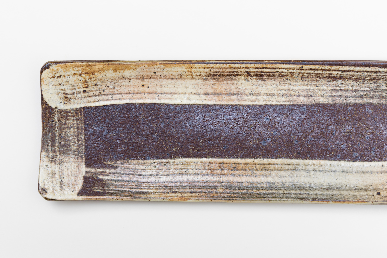 定番として長く愛されているL彫シリーズをもとに、作家さんと一緒にアイデアを重ねながら生まれた特別仕様の長皿です。当初はL字に刷毛目を入れるデザインからスタートしましたが、「いっそ全周に刷毛目を入れることでよりバランスが良く、表情豊かになるのでは」と試行錯誤を重ね、現在の姿に落ち着きました。刷毛目の重なりがまるでチェック柄のネルシャツのような、どこか懐かしく温かな雰囲気を漂わせます。細長いフォルムは、焼き魚や前菜、天ぷら、チーズや果物の盛り合わせなどにもぴったりです。