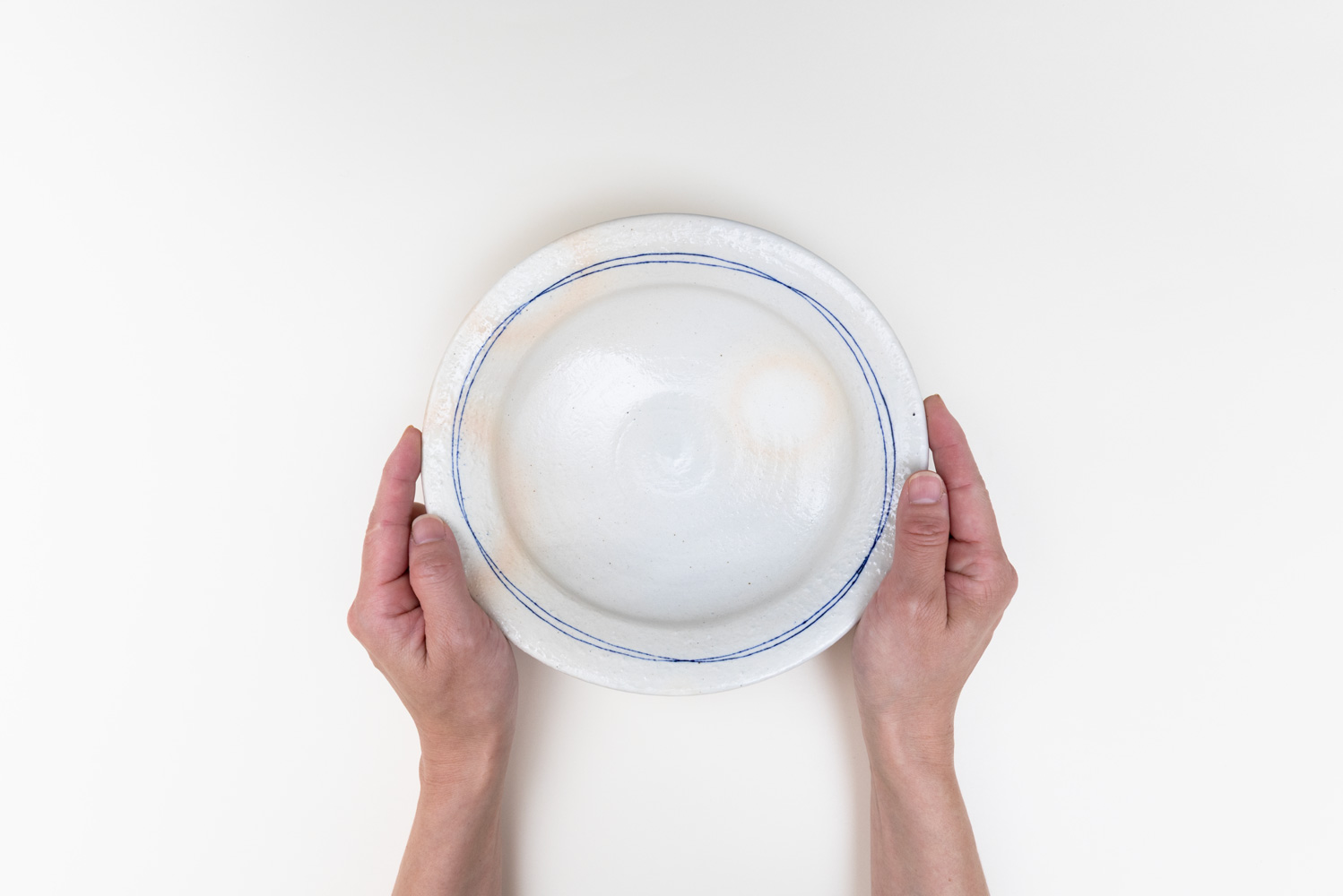 ゆるやかに“たわむ”リムのラインが、手仕事ならではの温かみを感じさせてくれるパスタ皿です。縁には古谷さんらしいゴス線をぐるりと引き、優しい粉引の表情に凛としたアクセントを添えています。見込みがすこし深く設計されているため、パスタやカレー、シチューなど汁気のある料理にも相性抜群。和洋問わず毎日の食卓で自然と手に取りたくなる一枚です。